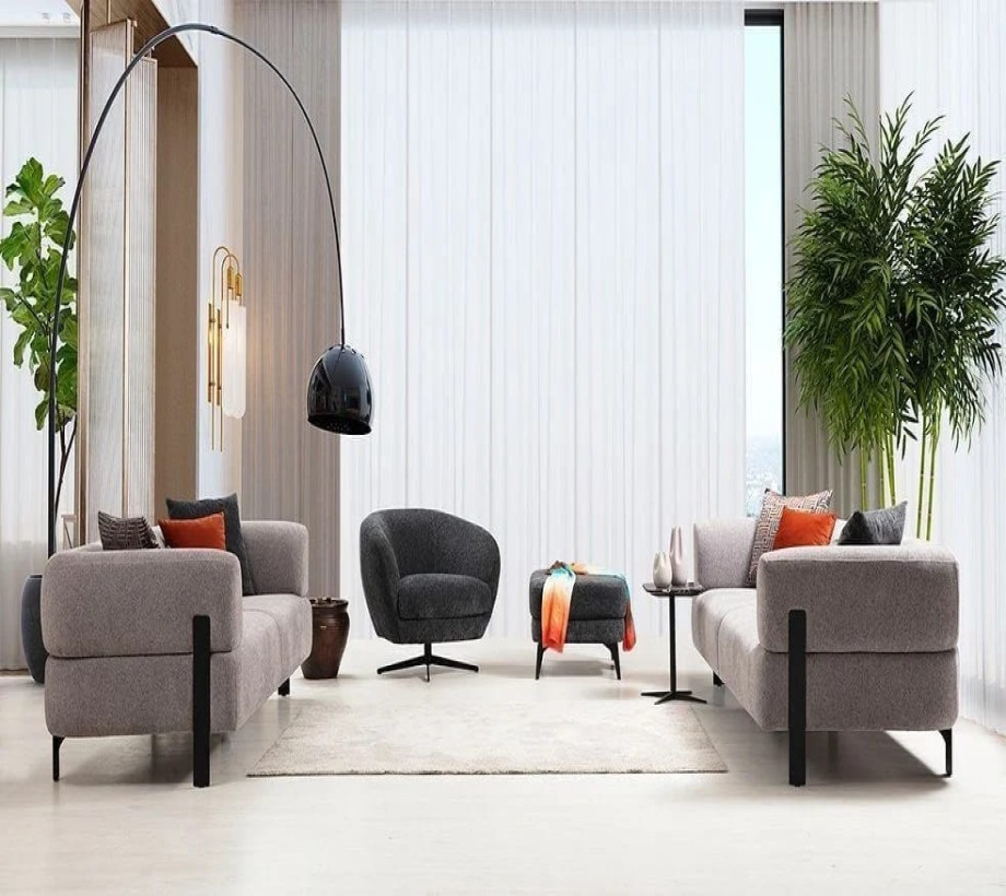 مكونة من كنبة ثنائية وكنبة ثلاثيه و 2 كرسي وترابيزة مودرن مصنعه من خشب الزان الطبيعى بطابع عصرى مميز