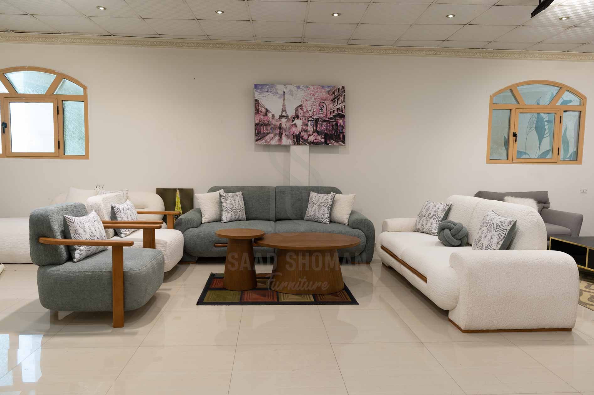 مكونة من كنبة ثنائية وكنبة ثلاثيه و 2 كرسي وترابيزة مودرن مصنعه من خشب الزان الطبيعى بطابع عصرى مميز