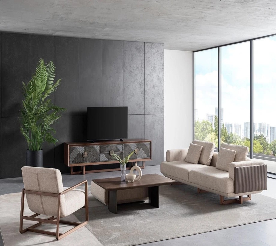 طاولة تلفاز عصريه أنيقة بلون خشبى غامق مع الرمادى الغامق مصنوعة من خشب الزان الطبيعي مع خشب الكونتر، تضيف لمسة راقية لديكور منزلك. تصميمها الأنيق والعصرىيجمع بين الجمال والأناقة.