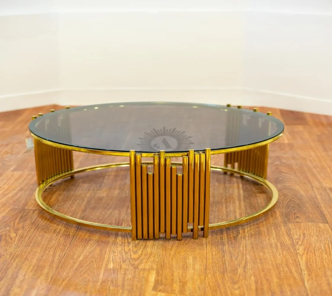 ترابيزة قهوة ستيل دائرية الوصف: مصنوع من الستيل عالى الجودة مقاوم للصدأ وزجاج طبيعى ليضيف لمسة من الفخامة لمنزلك الخامة : ستيل + زجاج عالى الجودة