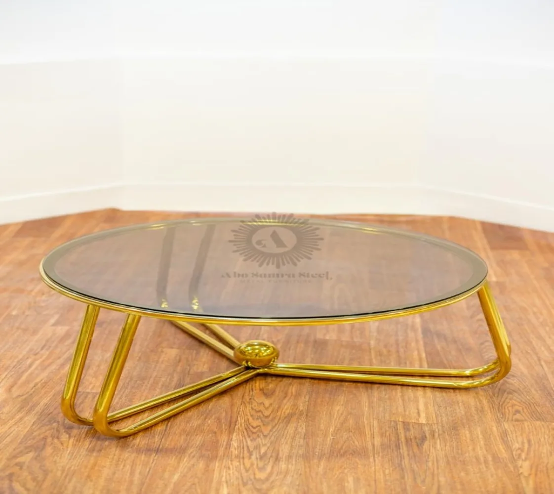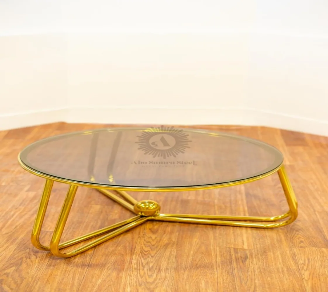 ترابيزة قهوة ستيل دائرية الوصف: مصنوع من الستيل عالى الجودة مقاوم للصدأ وزجاج طبيعى ليضيف لمسة من الفخامة لمنزلك الخامة : ستيل + زجاج عالى الجودة