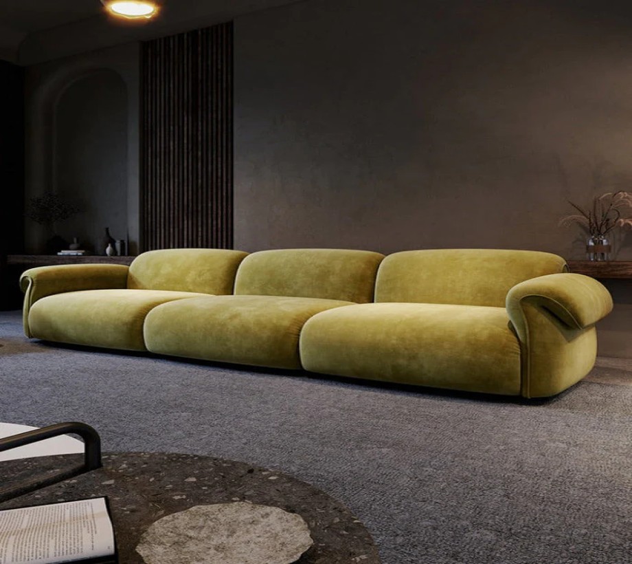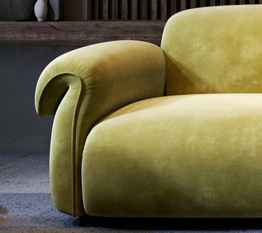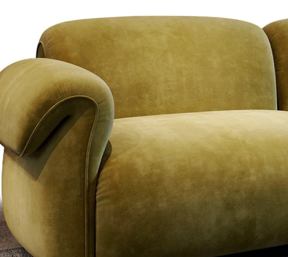 أريكة مذهلة بتنجيد قماش قطيفه مما يُظهر الحرفية عالية الجودة التي تشتهر بها الشركات المصنعة المصرية.