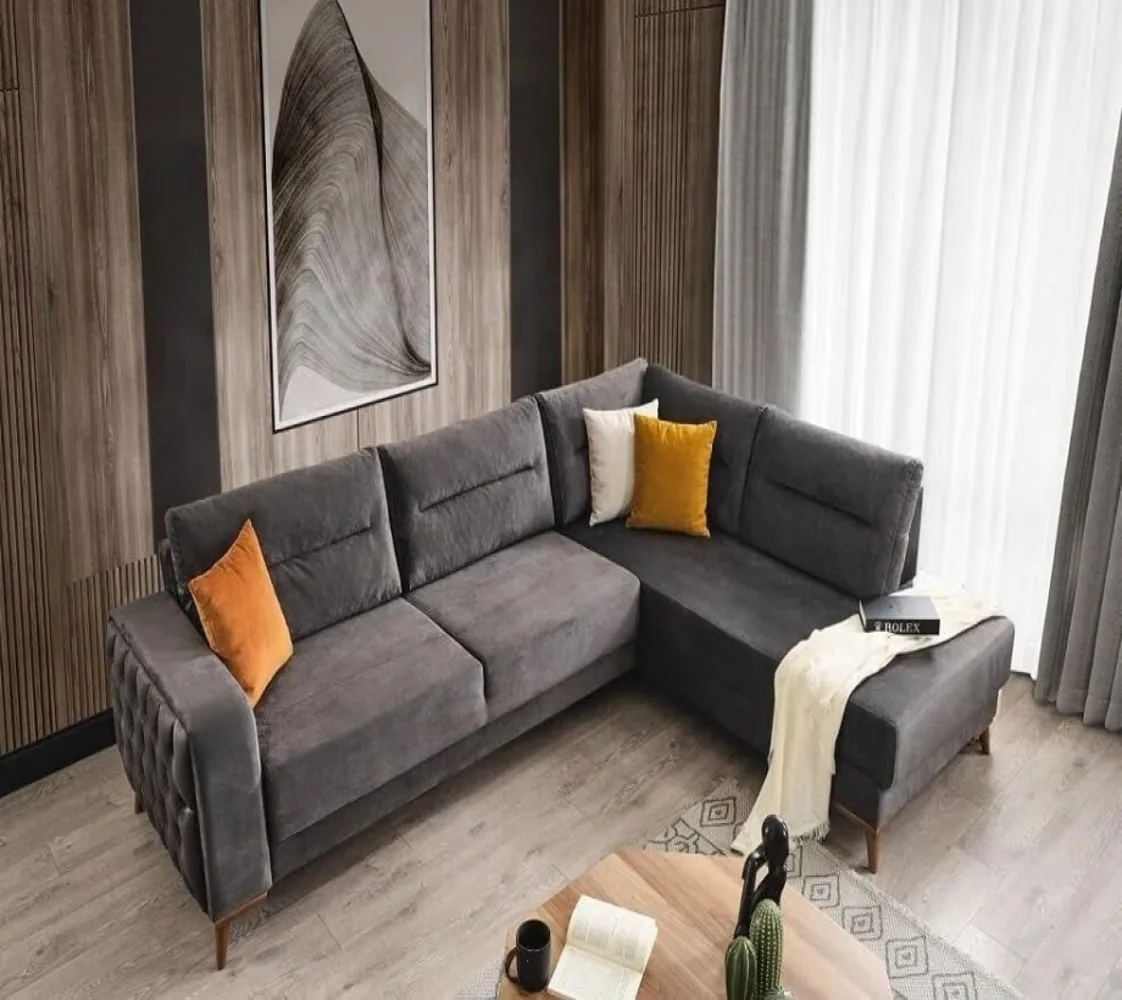 وصف اريكة زاوية بتصميم مريح أريكة زاوية بتصميم عصري مريح، مصنوعة من خامات عالية الجودة مثل قماش الكتان وخشب الزان