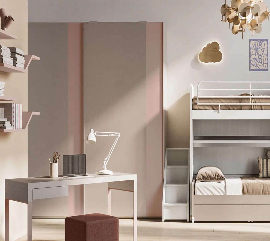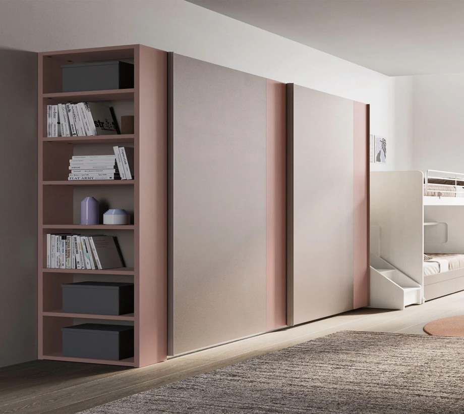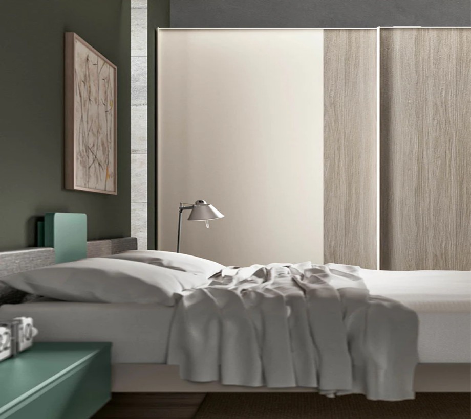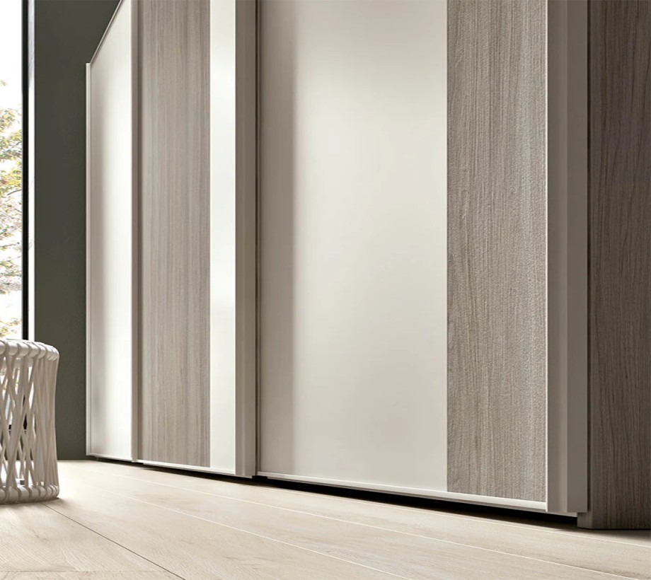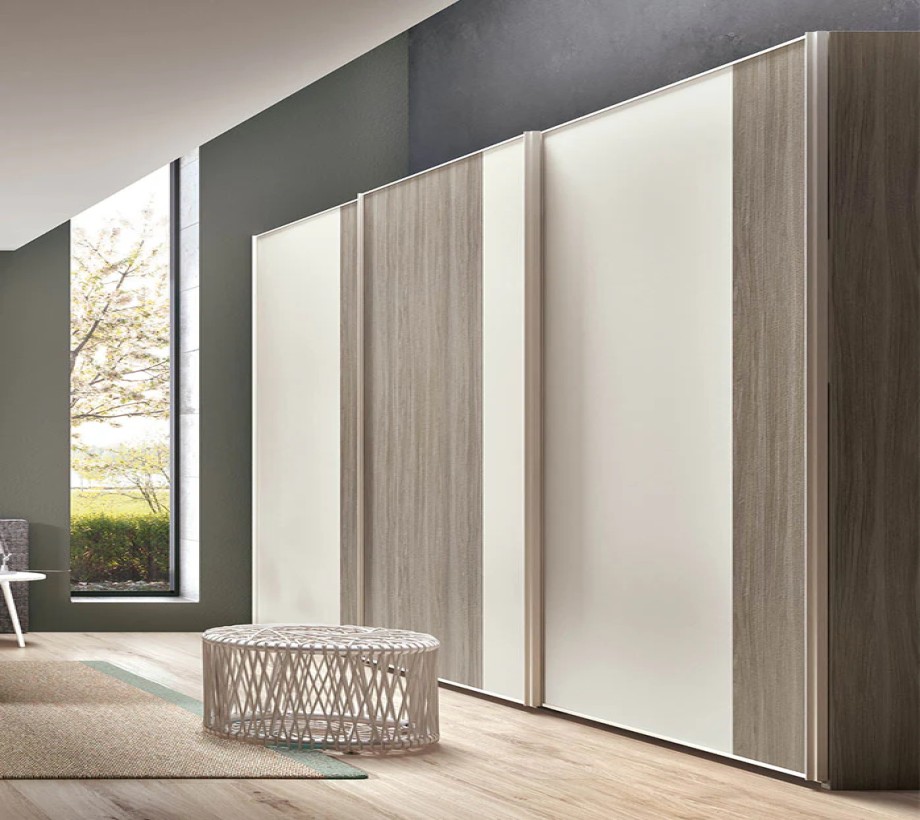 خزانة ملابس ثنائية اللون بأبواب منزلقة مثالية لغرف نوم الكبار أو الأطفال. تتمثل سماتها الرئيسية في الأبواب المقسمة رأسياً إلى لوحين بمقاسات مختلفة. من خلال اختيار لمسات نهائية وألوان مختلفة، يمكنك إنشاء مجموعات ألوان جميلة وأصلية.