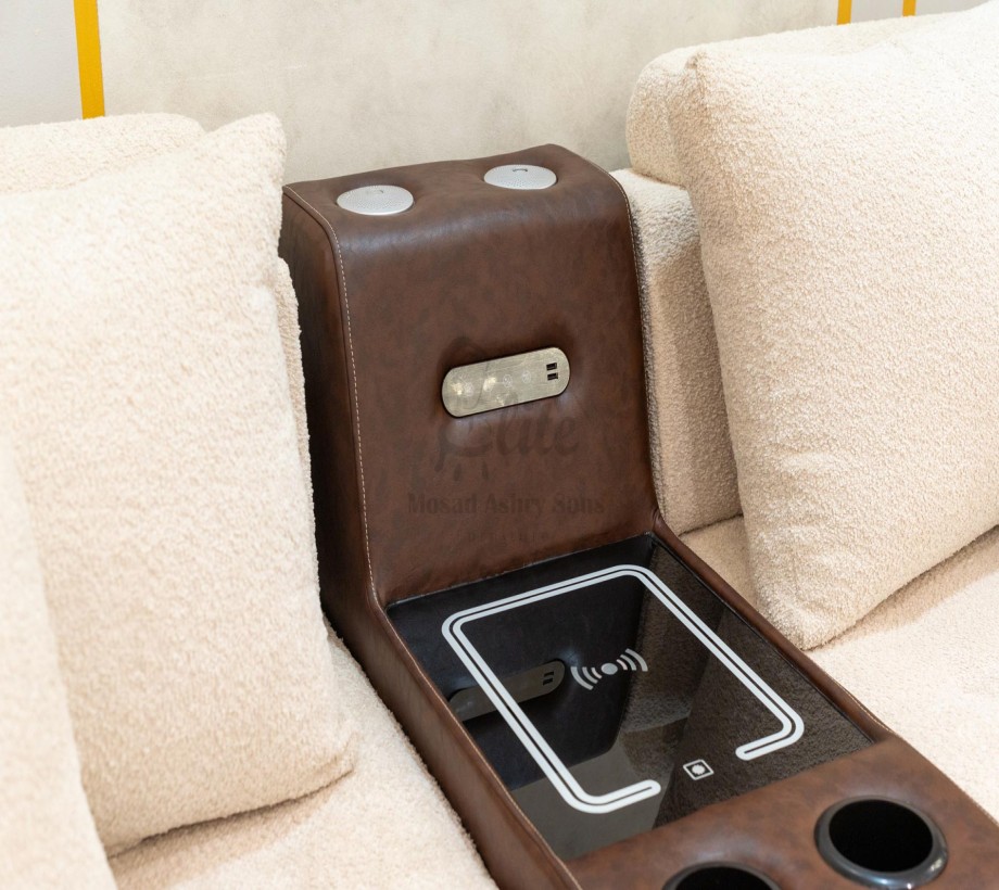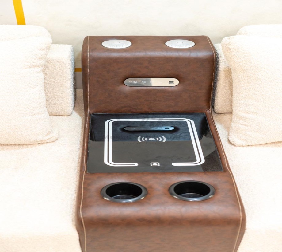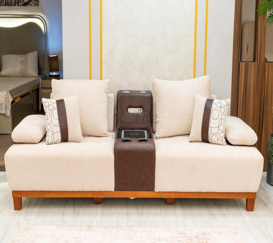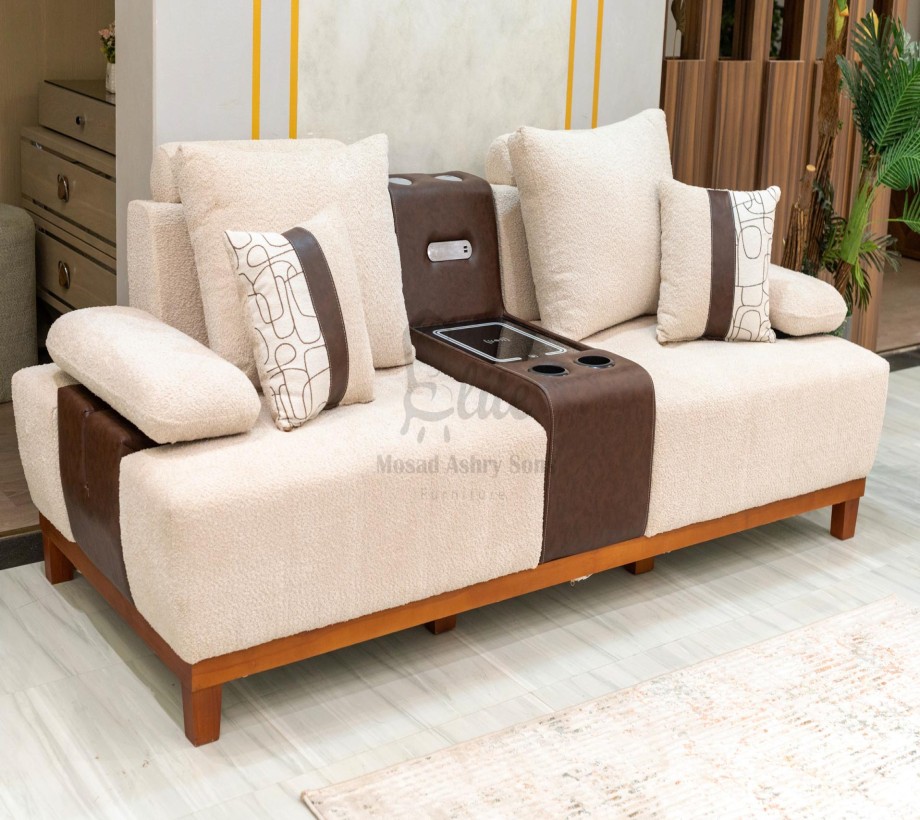 كنبه كبيرة 3 مقعد . 2 فوتيه . كنبه ثنائى 2 مقعد مزوده بشاحن Usb . مجموعة ترابيزات خشبية مودرن