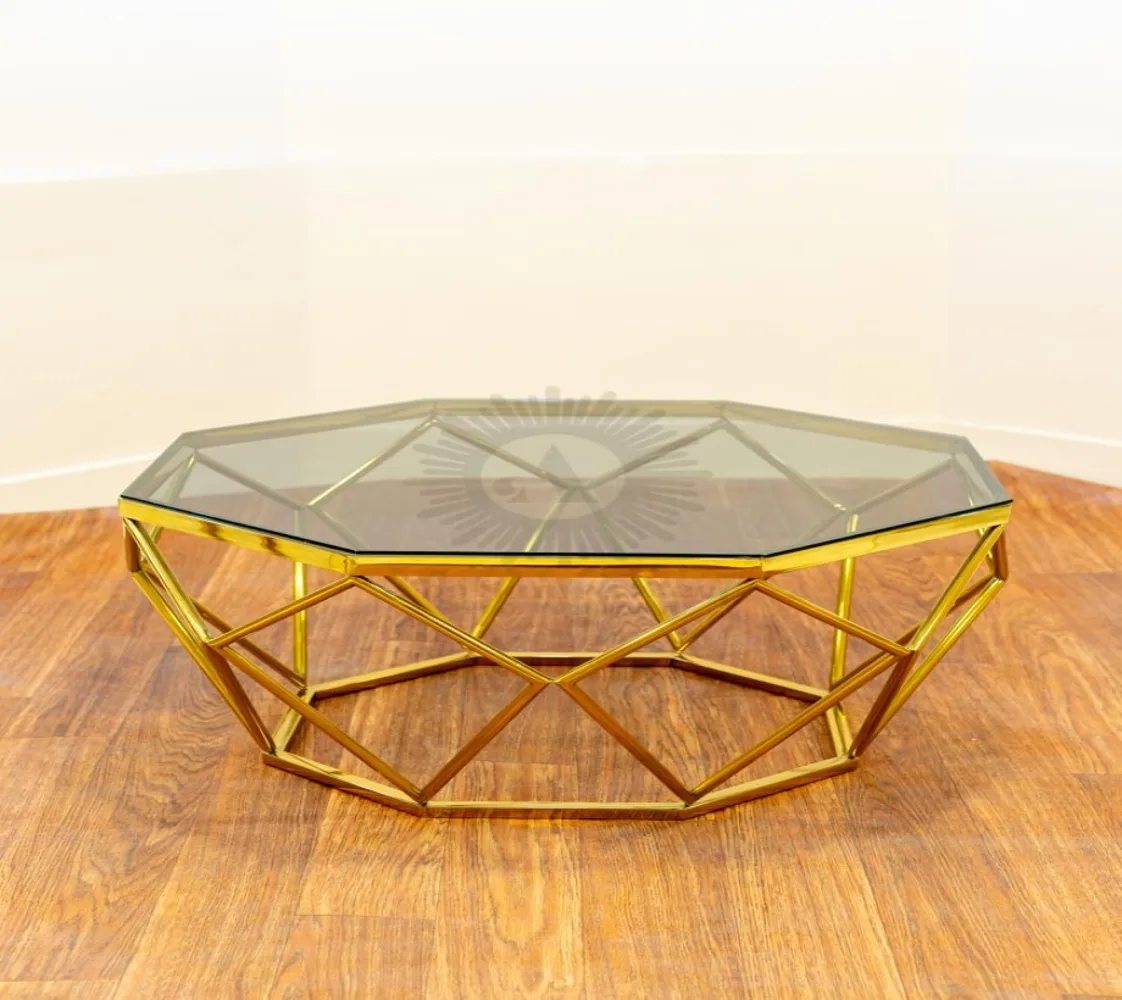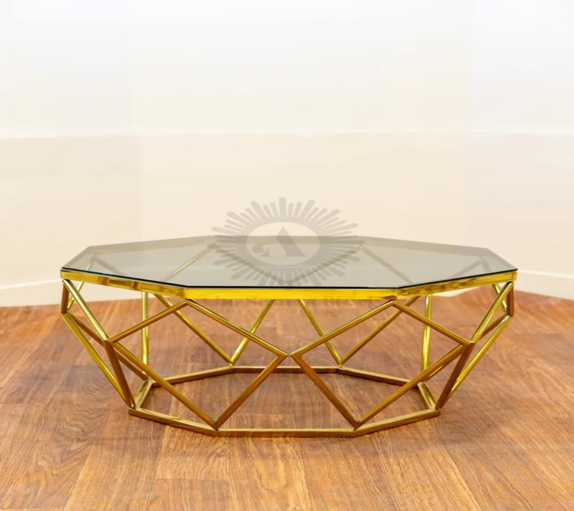 تربيزه قهوة على شكل سداسى مواسير الوصف: مصنوع من الستيل عالى الجودة مقاوم للصدأ وزجاج طبيعى ليضيف لمسة من الفخامة لمنزلك الخامة : ستيل +زجاج عالى الجودة