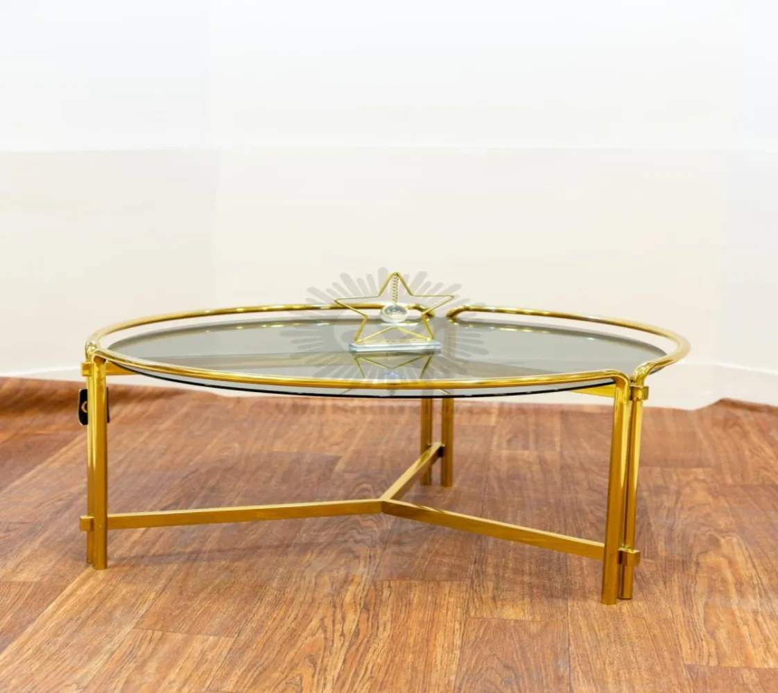 تربيزه قهوة على شكل دائرى الوصف: مصنوع من الستيل عالى الجودة مقاوم للصدأ وزجاج طبيعى ليضيف لمسة من الفخامة لمنزلك الخامة : ستيل +زجاج عالى الجودة