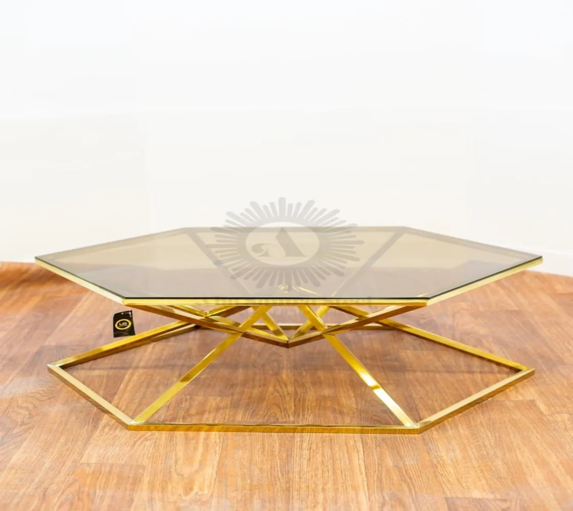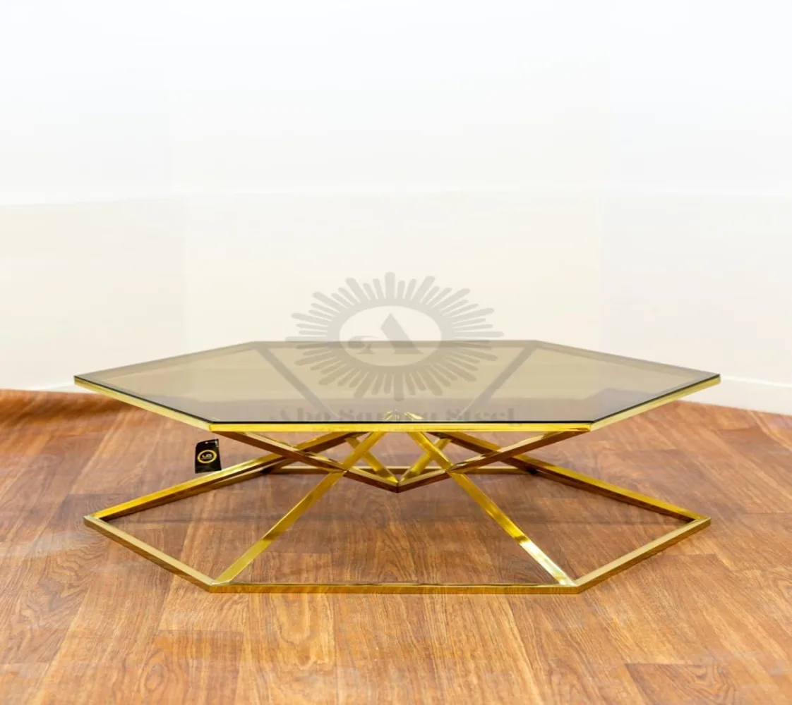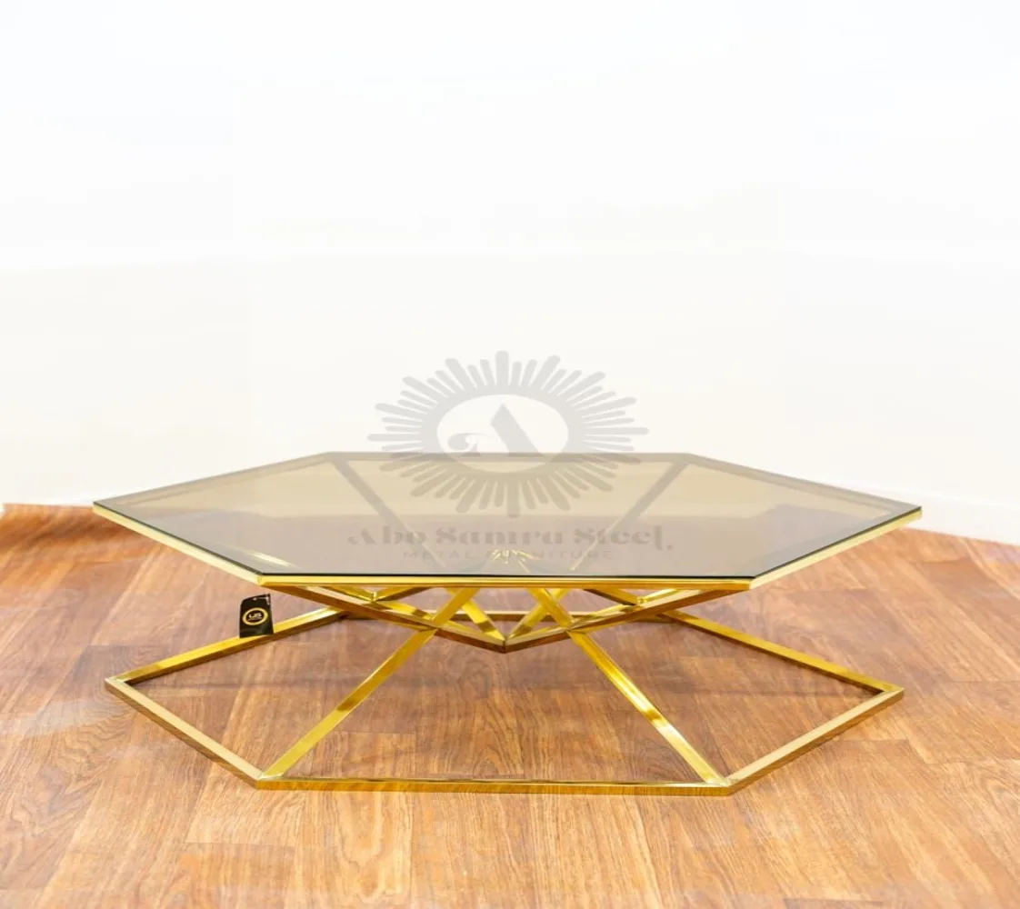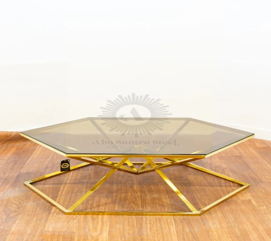 تربيزه قهوة على شكل هرمى سداسى الوصف: مصنوع من الستيل عالى الجودة مقاوم للصدأ وزجاج طبيعى ليضيف لمسة من الفخامة لمنزلك الخامة : ستيل +زجاج عالى الجودة