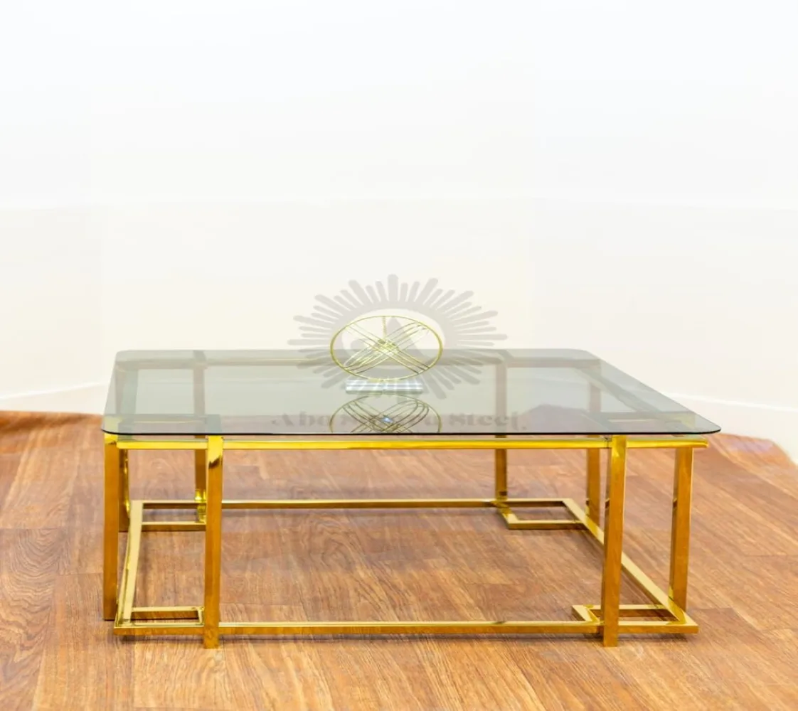 تربيزه قهوة على شكل مربع الوصف: مصنوع من الستيل عالى الجودة مقاوم للصدأ وزجاج طبيعى ليضيف لمسة من الفخامة لمنزلك الخامة : ستيل +زجاج عالى الجودة