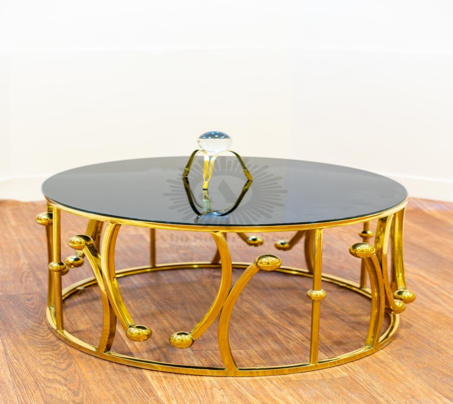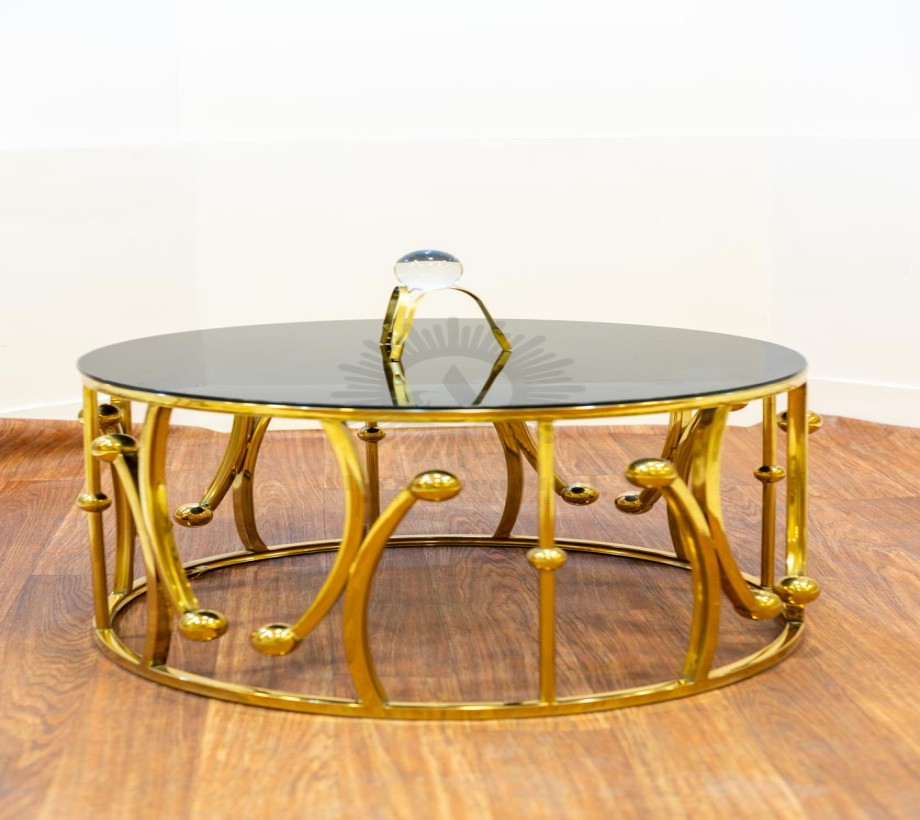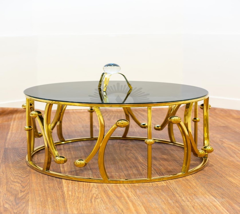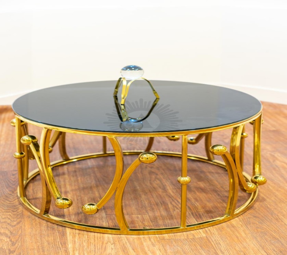 تربيزه قهوة على شكل دائرى ليزر الوصف: مصنوع من الستيل عالى الجودة مقاوم للصدأ وزجاج طبيعى ليضيف لمسة من الفخامة لمنزلك الخامة : ستيل +زجاج عالى الجودة