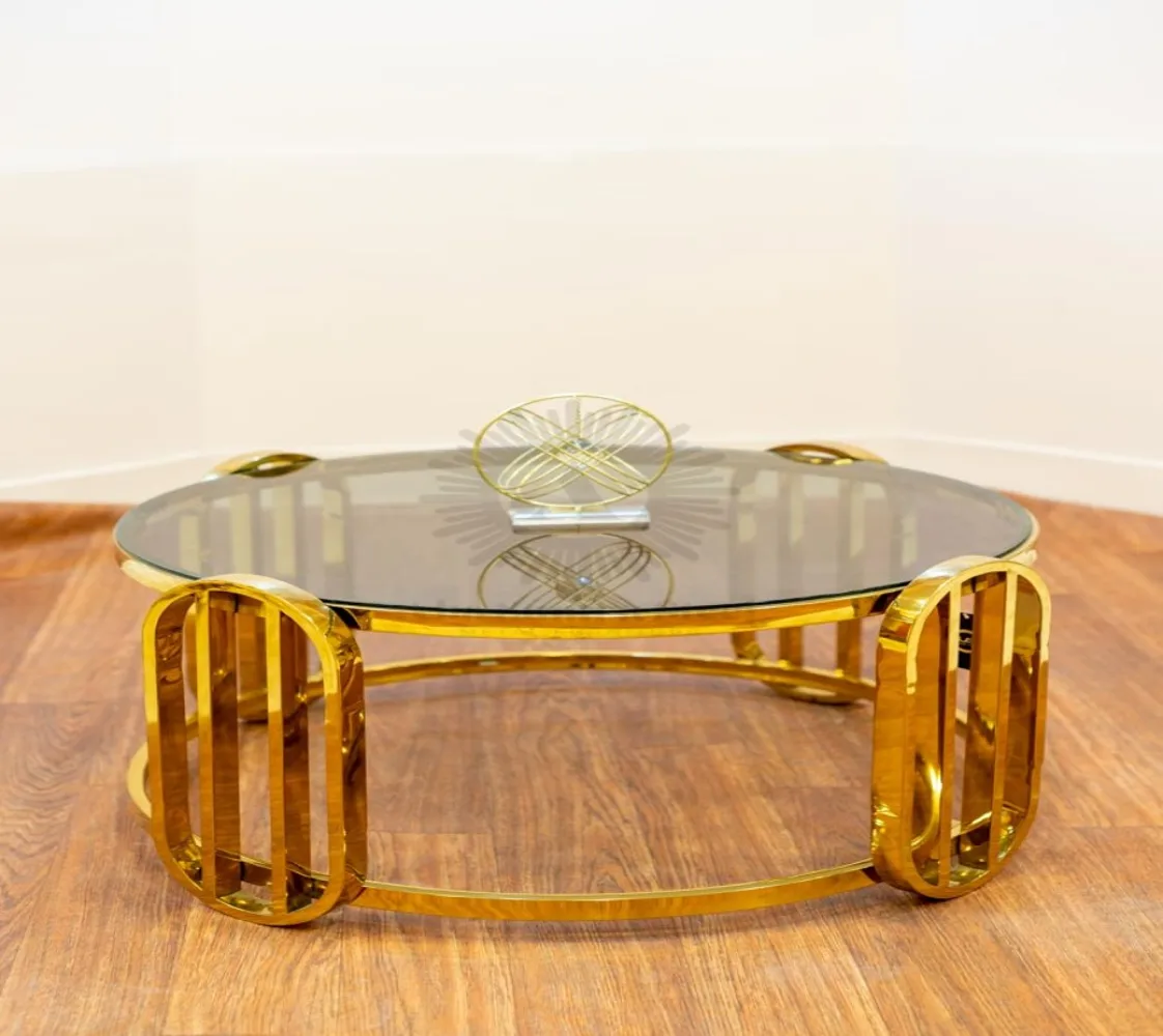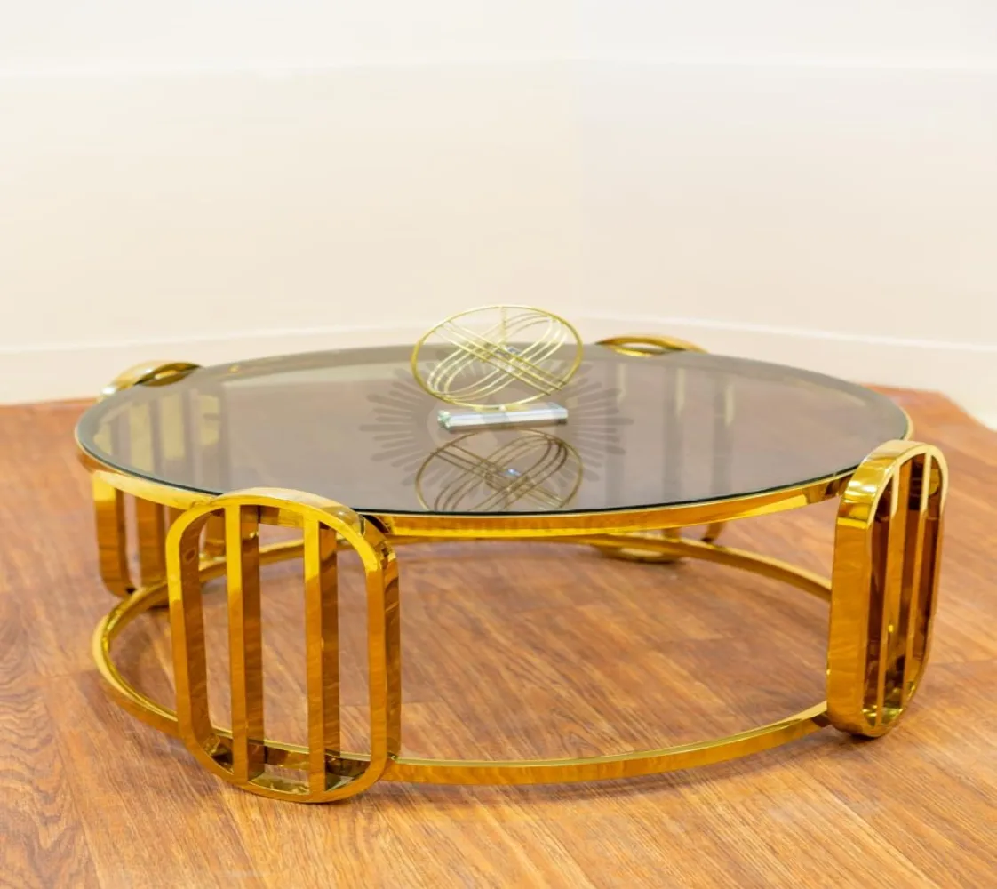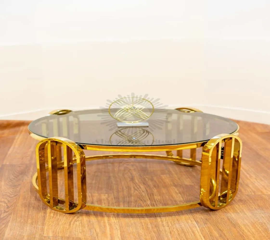 تربيزه قهوة على شكل دائرى الوصف: مصنوع من الستيل عالى الجودة مقاوم للصدأ وزجاج طبيعى ليضيف لمسة من الفخامة لمنزلك الخامة : ستيل +زجاج عالى الجودة