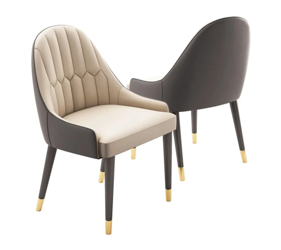 غرفة طعام تحتوى على : كرسي ومقعد وطاولة طعام حديثة.
