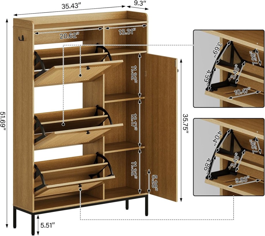 خزانة تخزين أحذية الروطان مع 3 أدراج قابلة للطي ، رفوف أحذية قائمة بذاتها مع أرفف قابلة للتعديل ، خزانة أحذية ضيقة للدخول ، مدخل ، غرفة معيشة