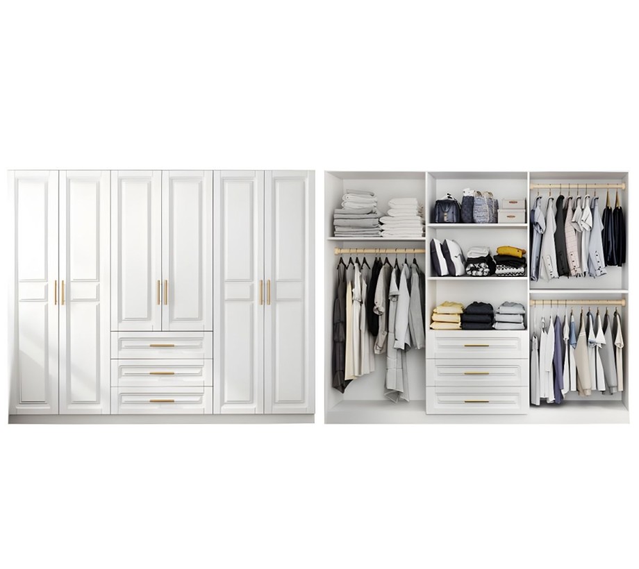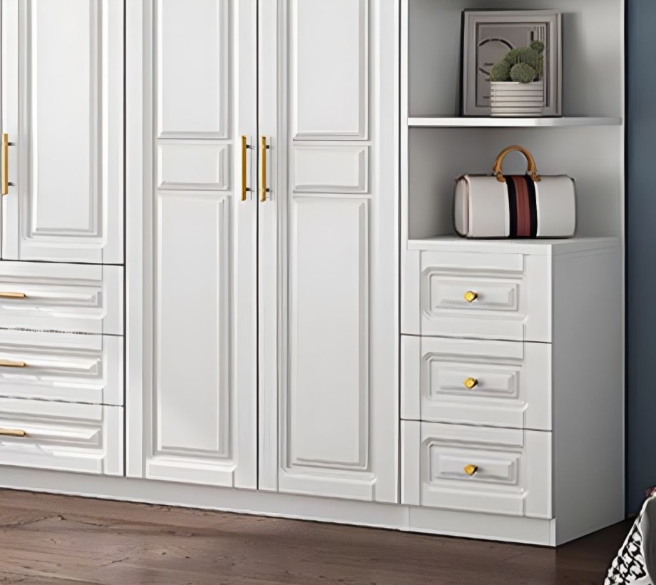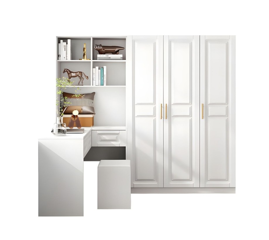 دولاب ملابس مودرن بتصميم مميز وأنيق، صُنعت من خشب طبيعي باللون الأبيض الجذاب. تتميز بمقاسات كبيرة تتسع لتخزين الملابس والأغراض بكل سهولة ويسر مع مكتب أطفال .