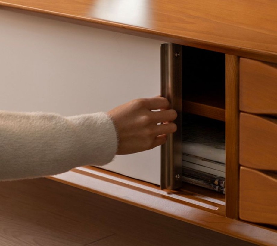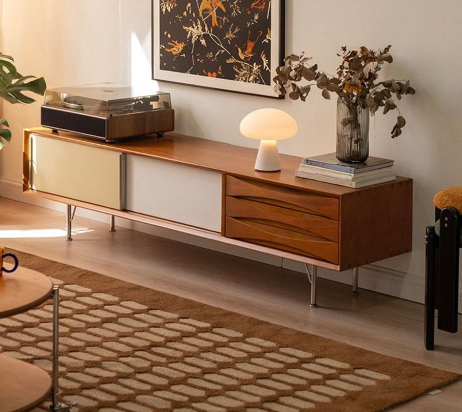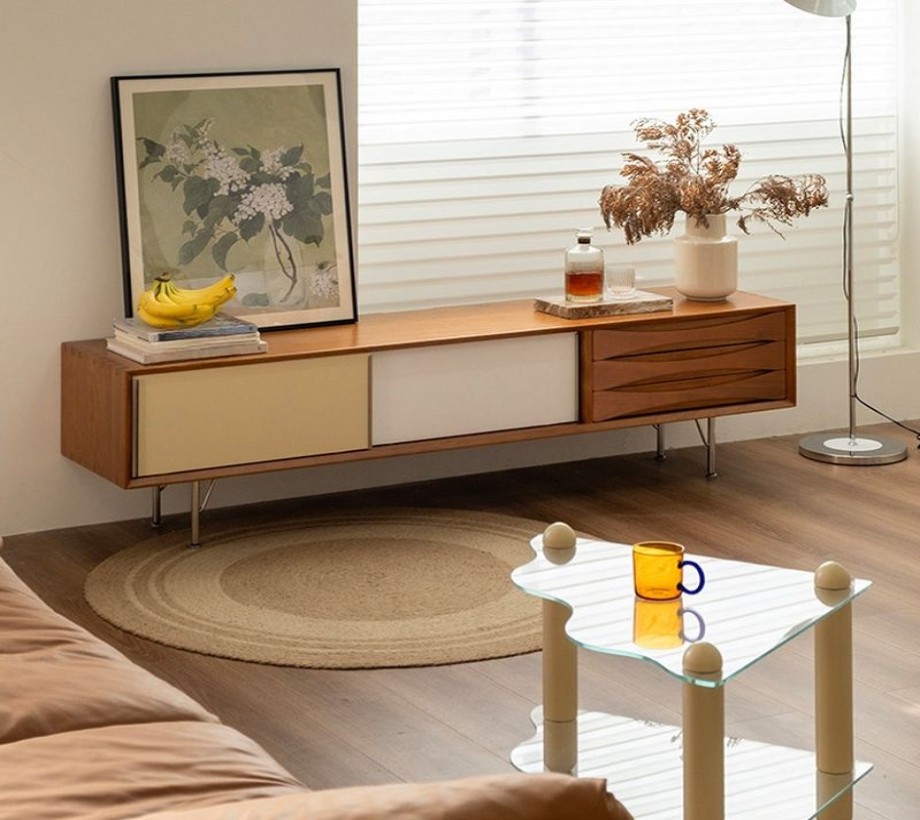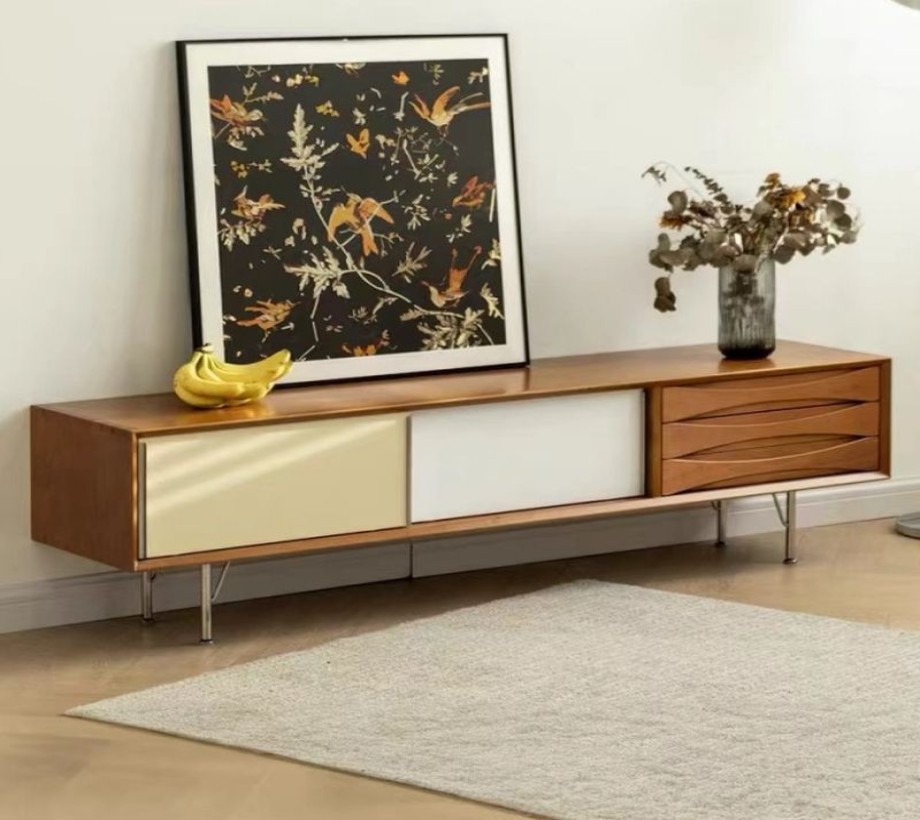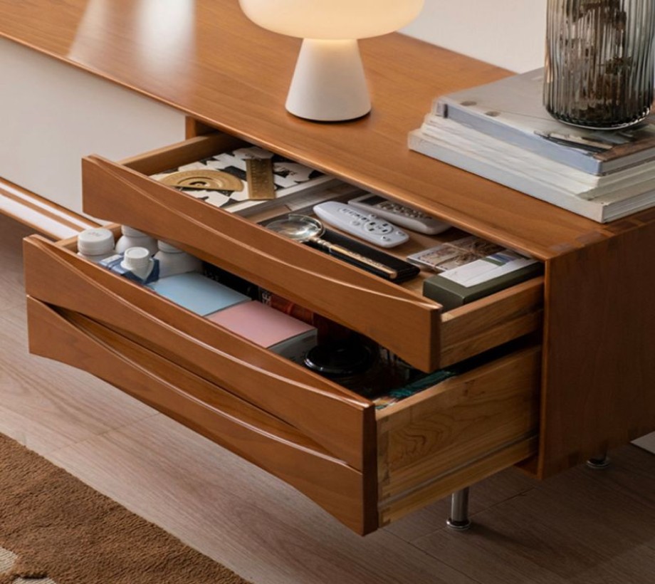 ترابيزة تلفزيون مع درجين وخزانتين وإدارة الكابلات والإضاءة بتصميم عصري، مزودة بمساحة تخزين مميزة، مصنوعة من الخشب الطبيعي وخشب الكونتر ، أنيقة وعملية، وتلبي احتياجاتك في ترتيب وتنظيم منزلك بشكل مثالي