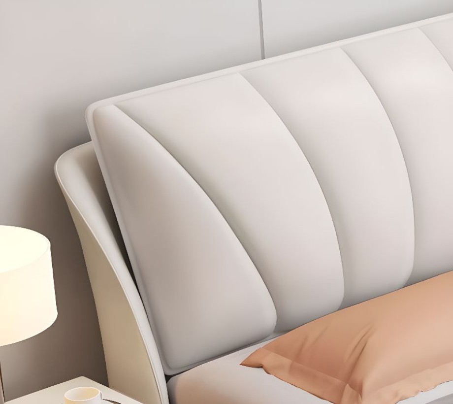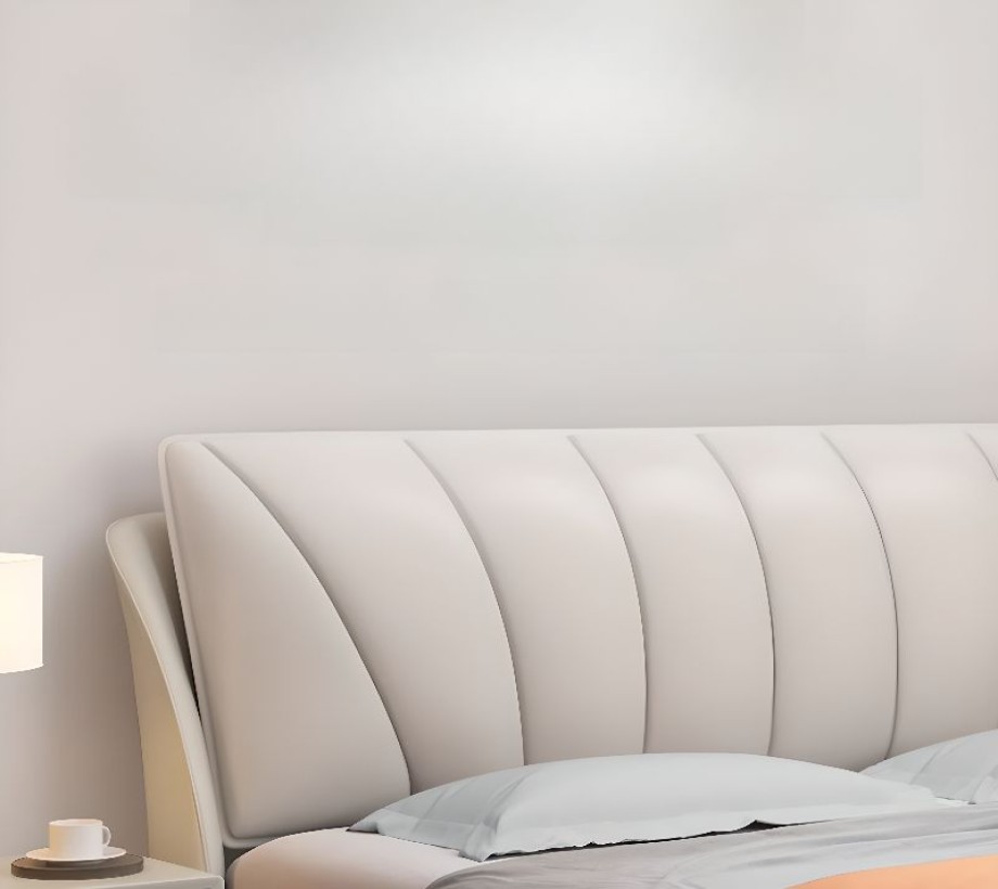 إطار سرير من الجلد عالى الجودة باللون الرمادى الفاتح مع لوح أمامي مستطيل، وتنجيد إسفنجي، قابل للطي