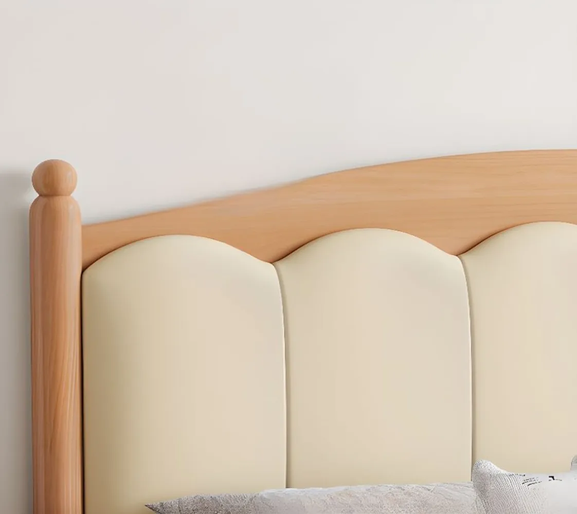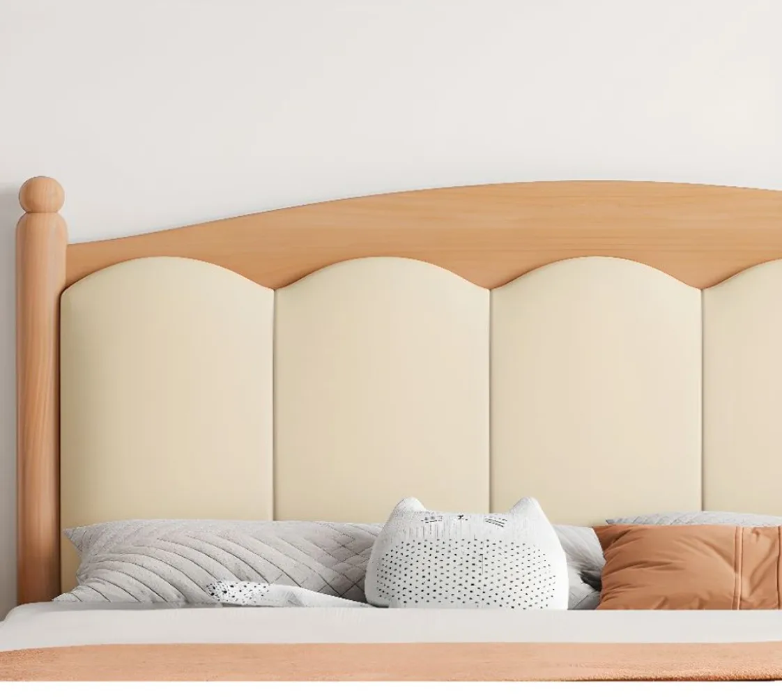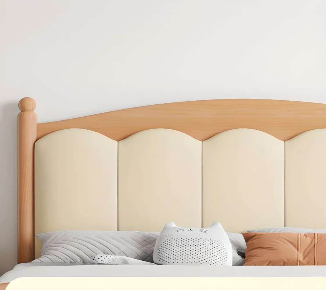 سرير لوحي بلمسة نهائية طبيعية مع لوح أمامي مملوء بالإسفنج، سهل التجميع لغرفة النوم