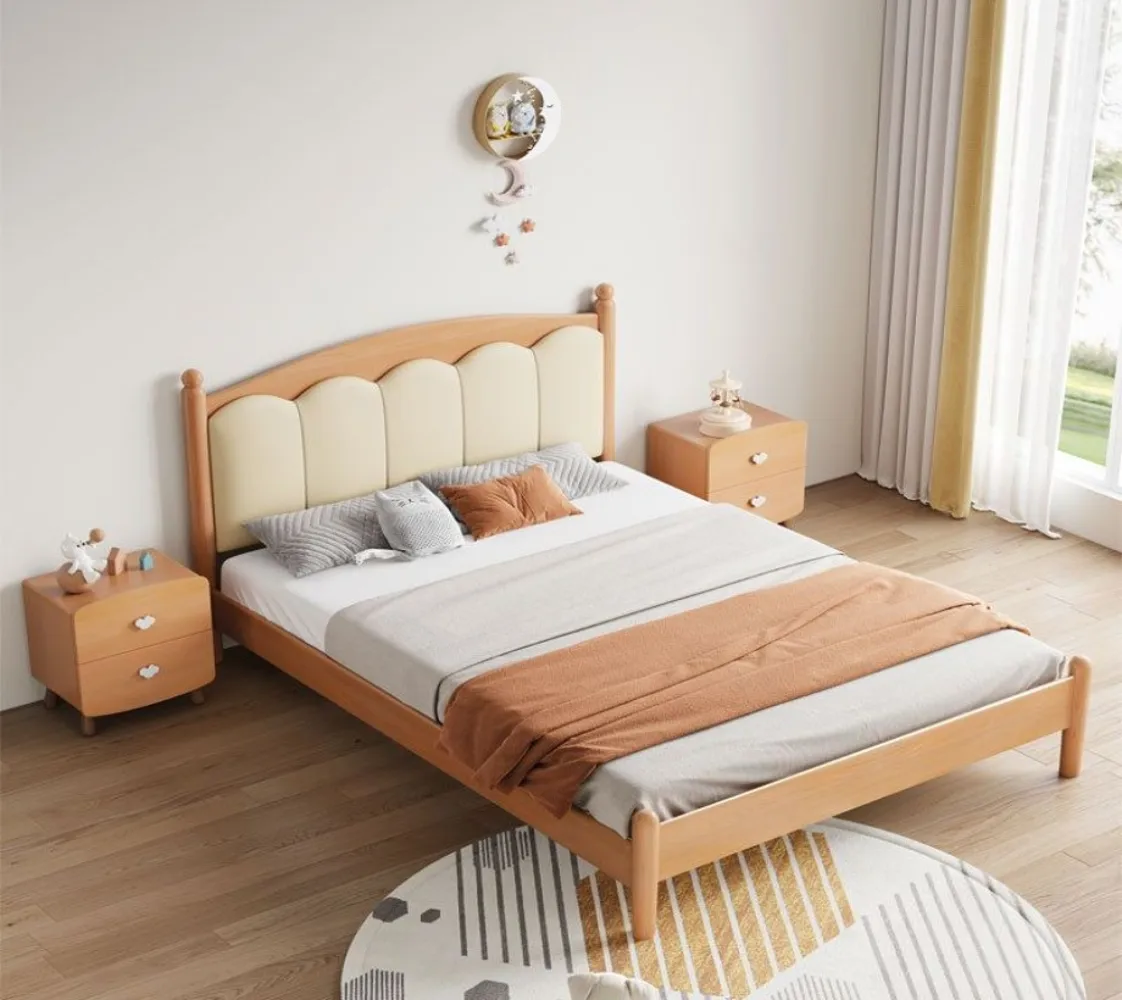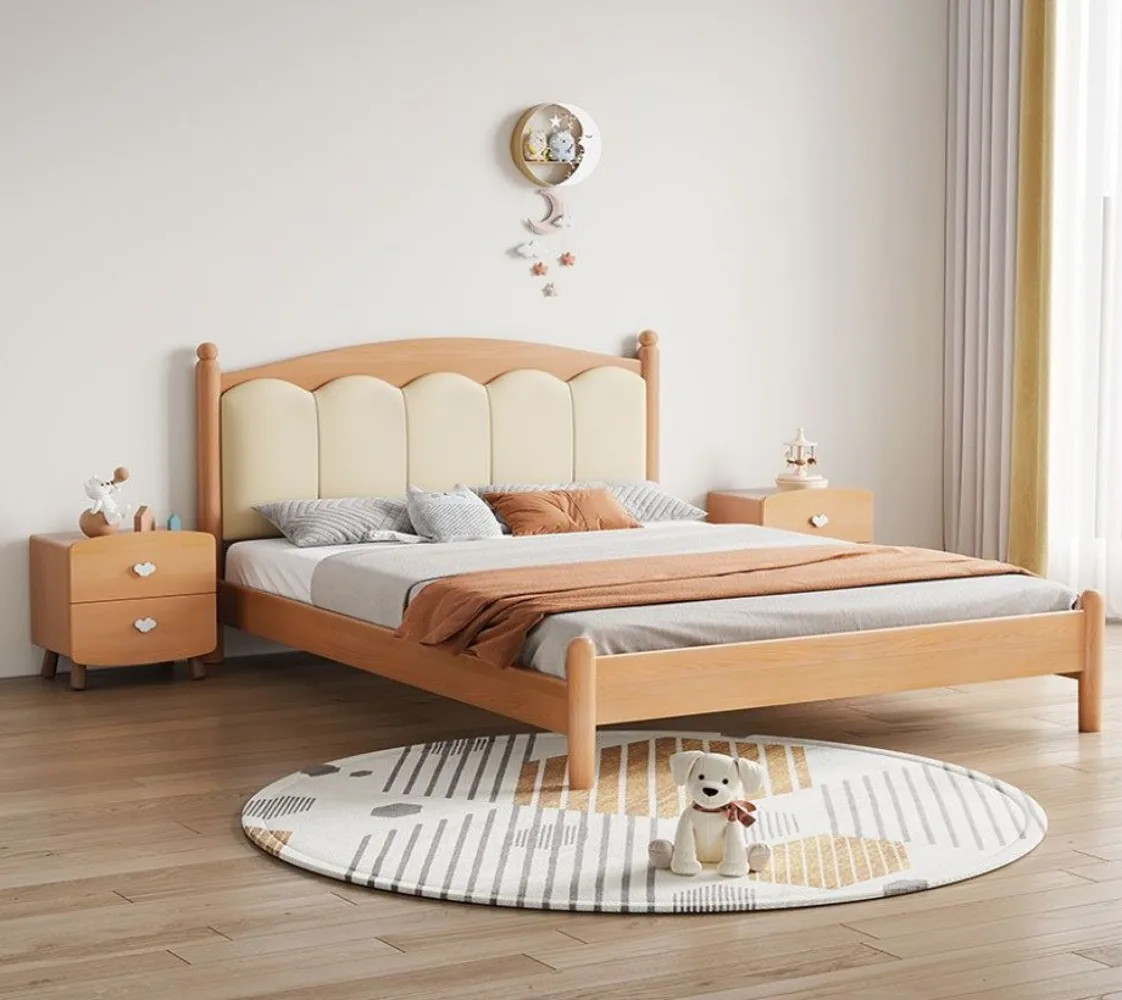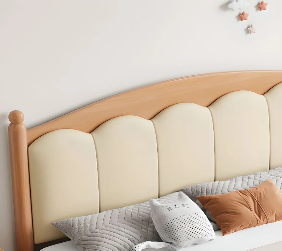 سرير لوحي بلمسة نهائية طبيعية مع لوح أمامي مملوء بالإسفنج، سهل التجميع لغرفة النوم
