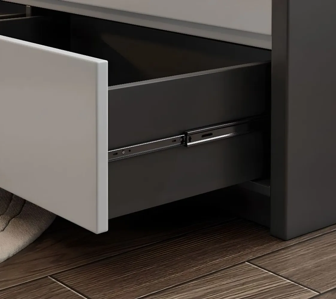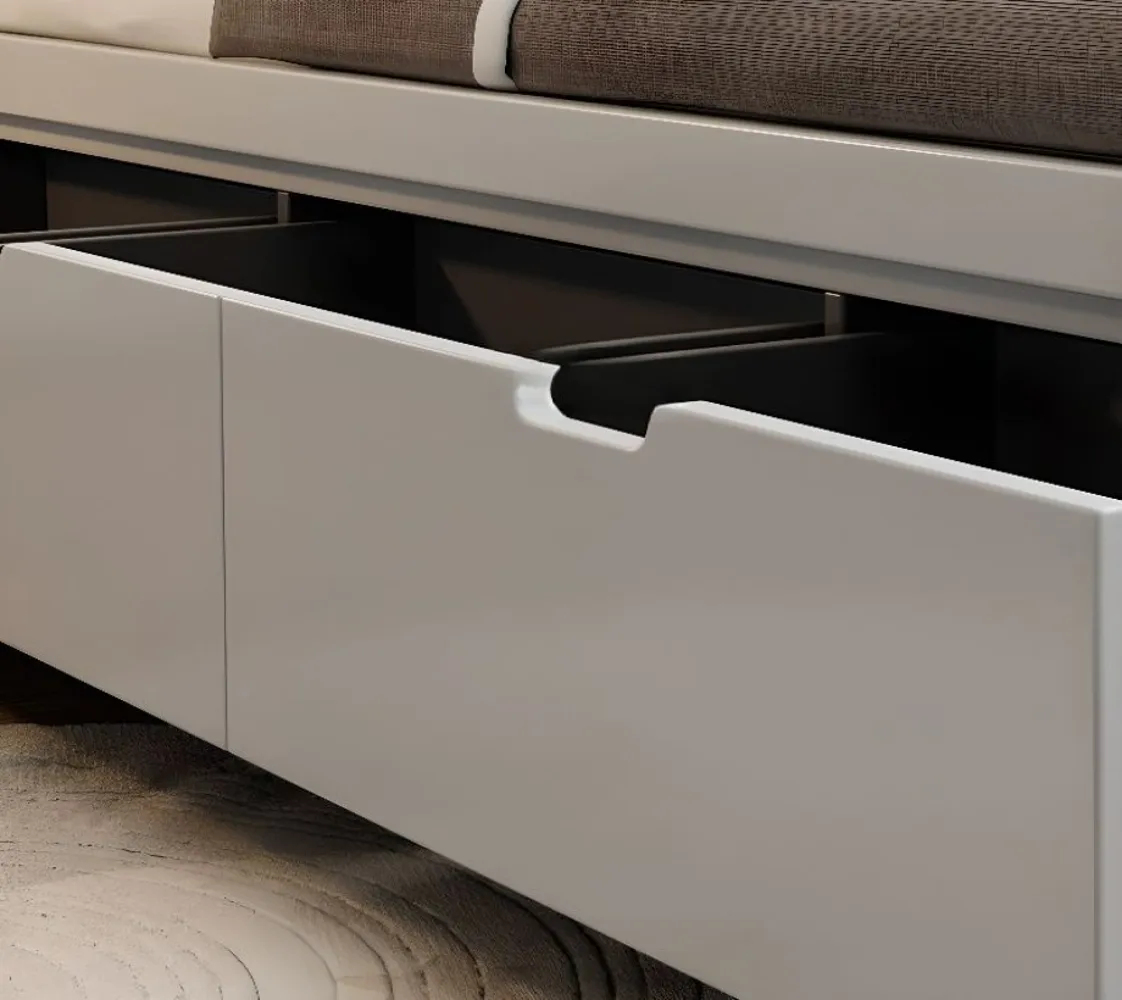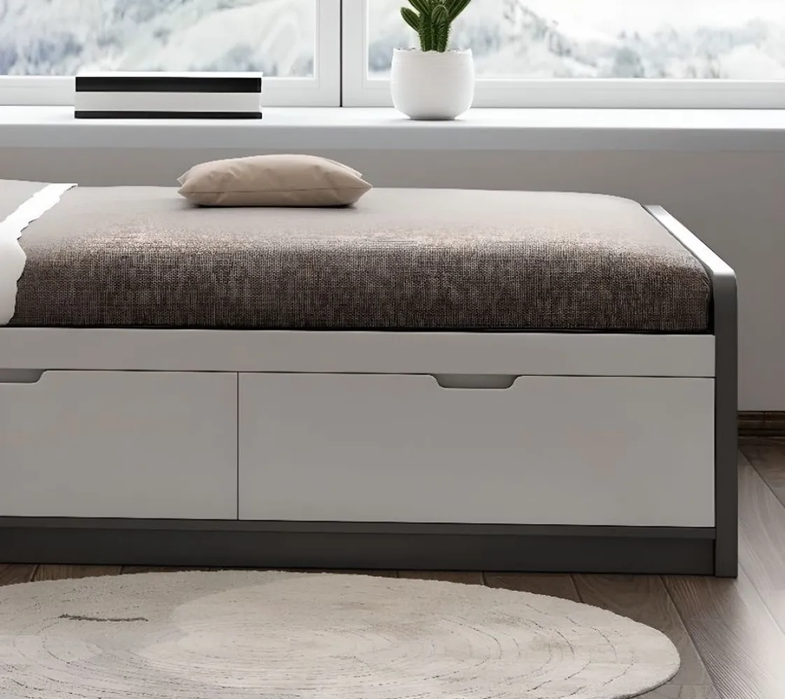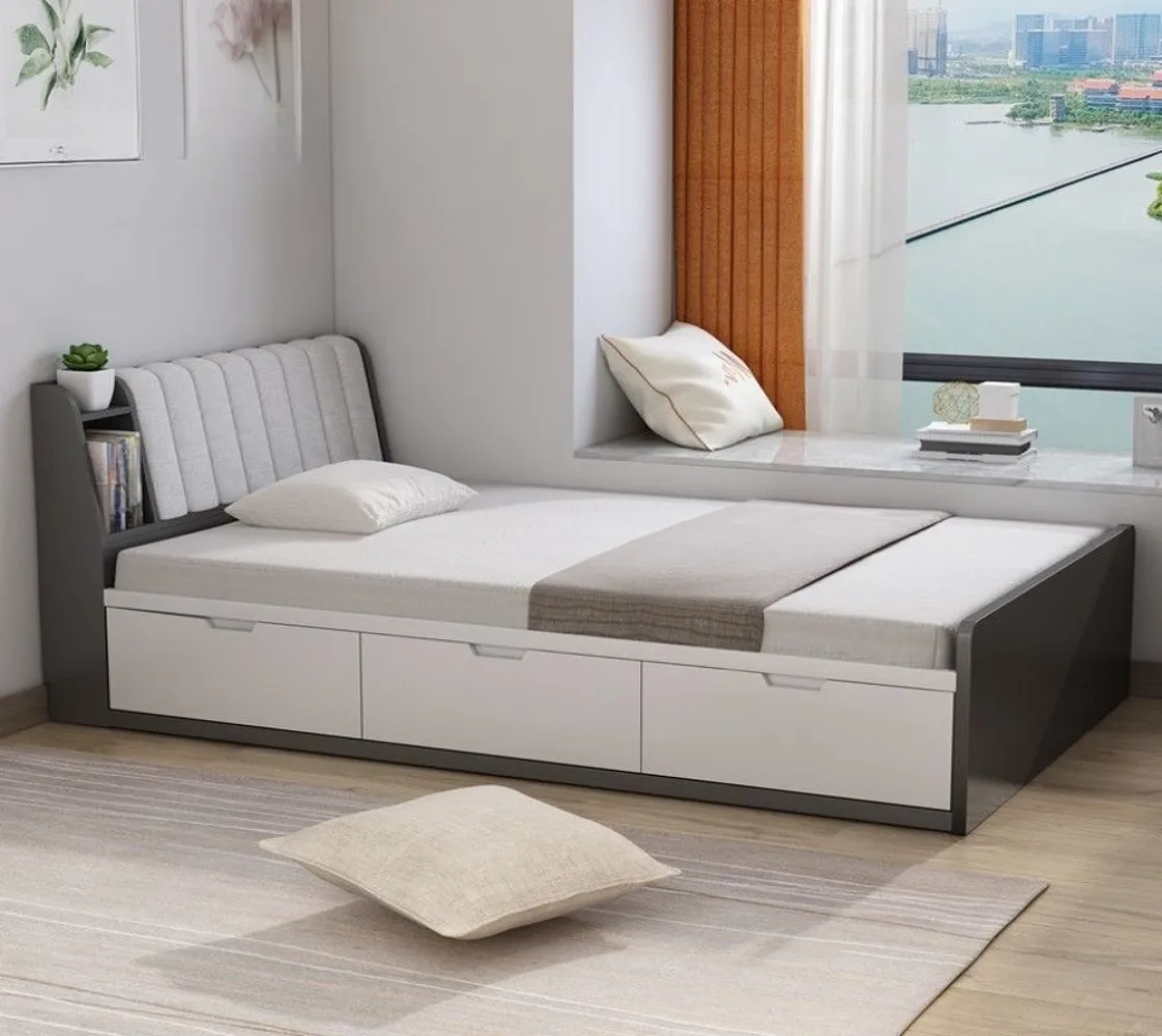 سرير خشبي بثلاثة أدراج من أخشاب طبيعية مع تنجيد إسفنجي للراحة