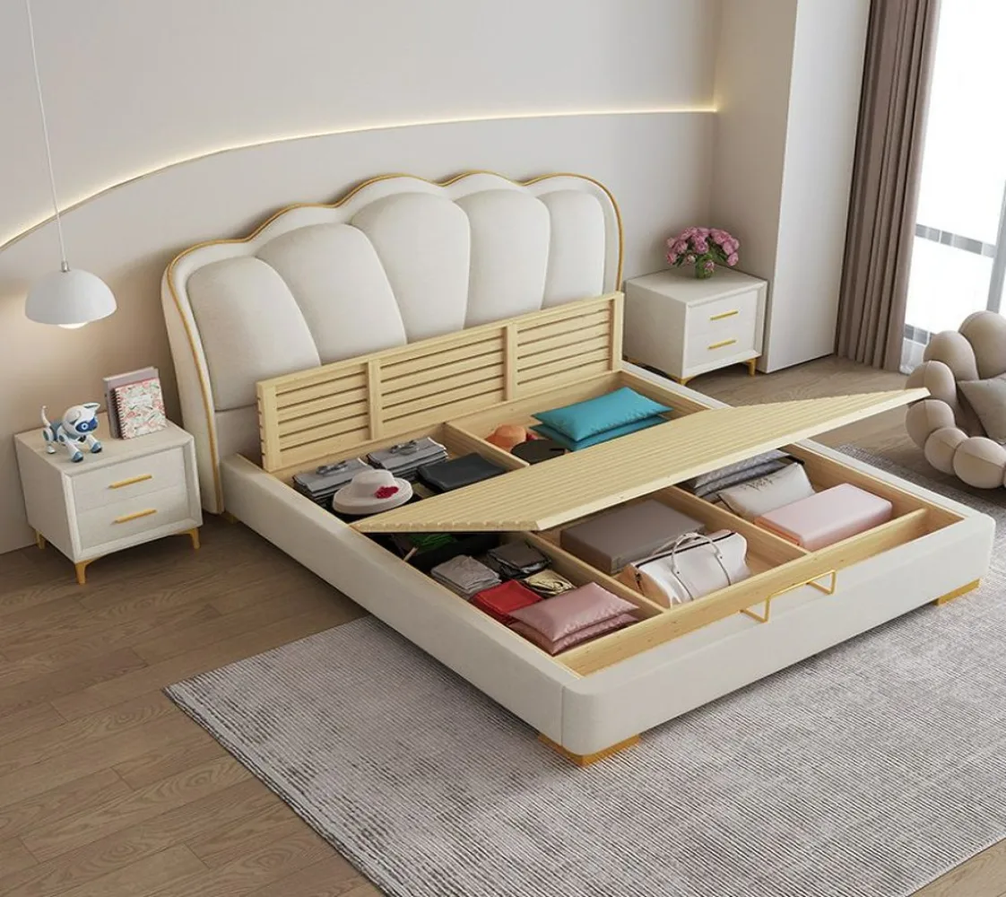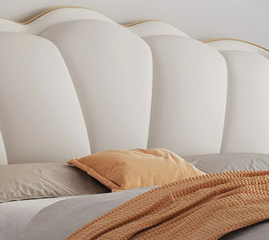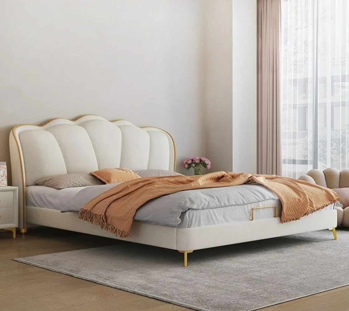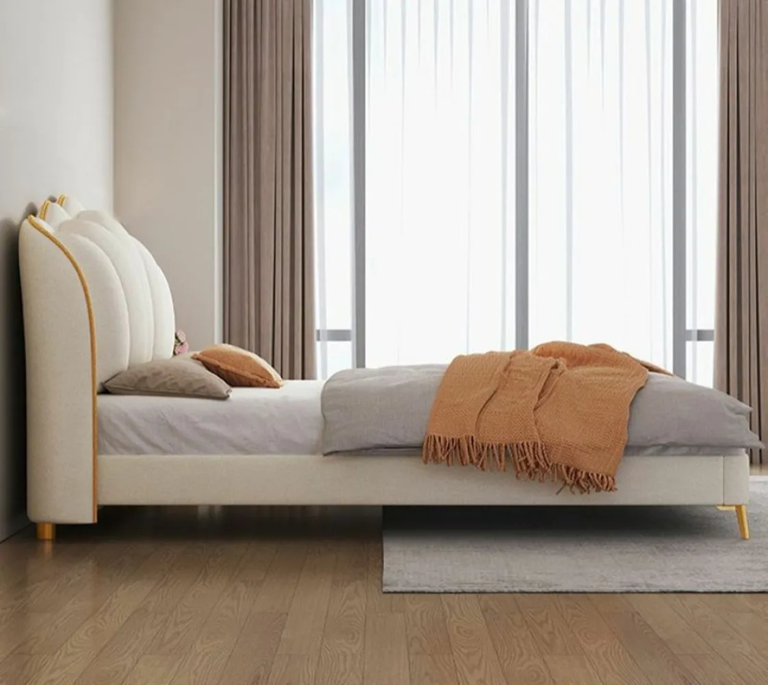 سرير مودرن مبطن بالإسفنج للاستخدام في غرفة نوم عصريه مع اطار معدن جولد مقاوم للصدأ