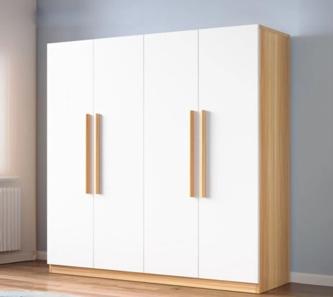 دولاب ملابس مودرن بتصميم مميز وأنيق، صُنعت من خشب طبيعي باللون الأبيض الجذاب. تتميز بمقاسات كبيرة تتسع لتخزين الملابس والأغراض بكل سهولة ويسر .