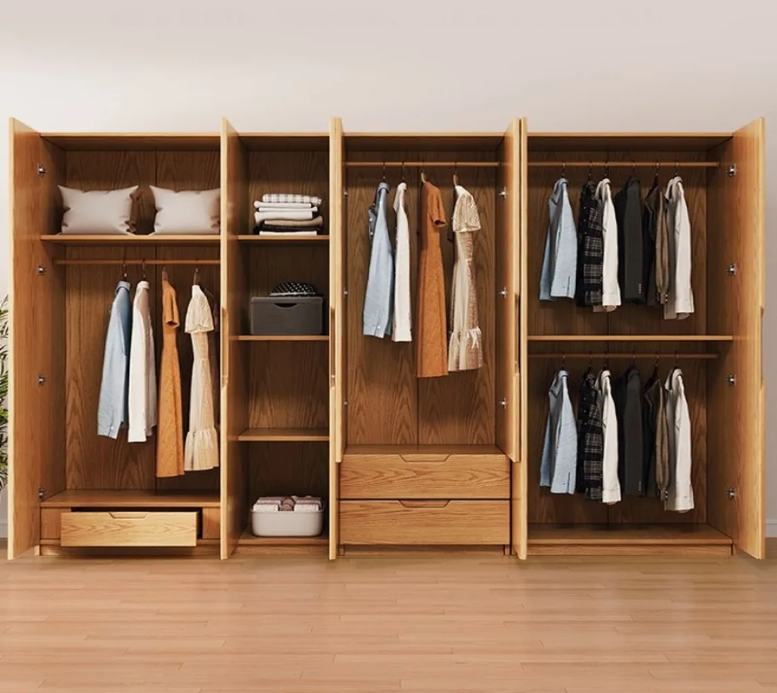 دولاب ملابس مودرن بتصميم مميز وأنيق، صُنعت من خشب طبيعي بلون خشبى جذاب. تتميز بمقاسات كبيرة تتسع لتخزين الملابس والأغراض بكل سهولة ويسر .