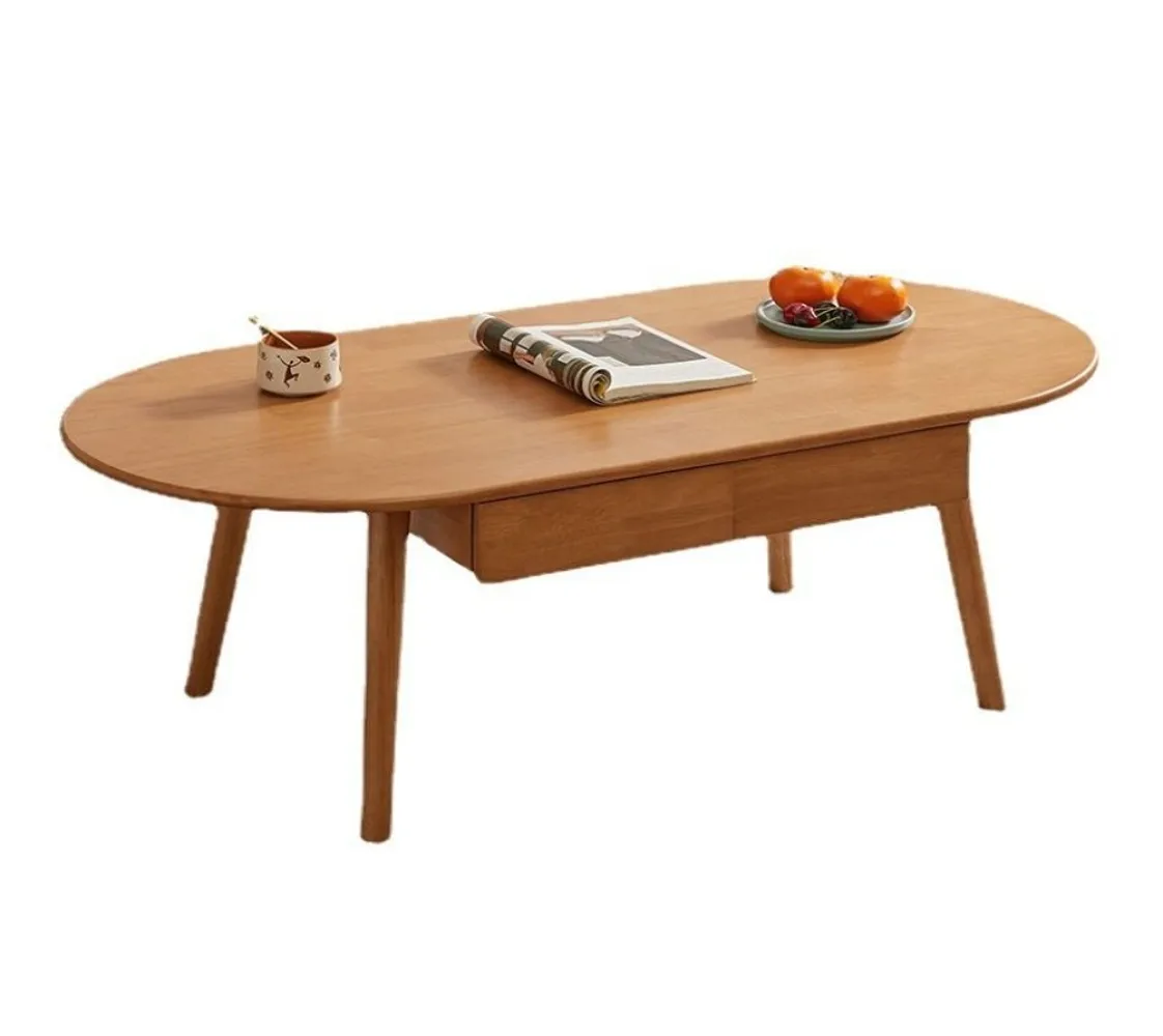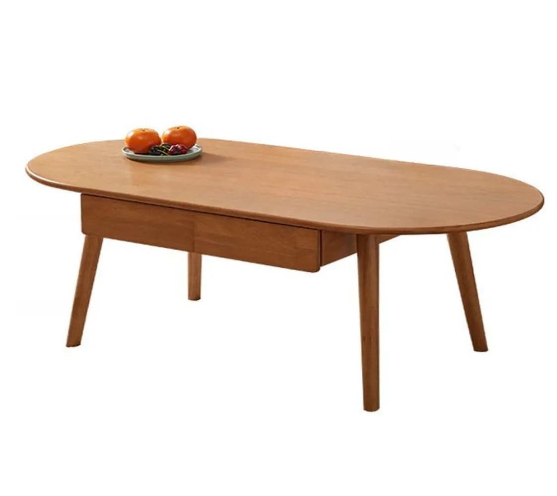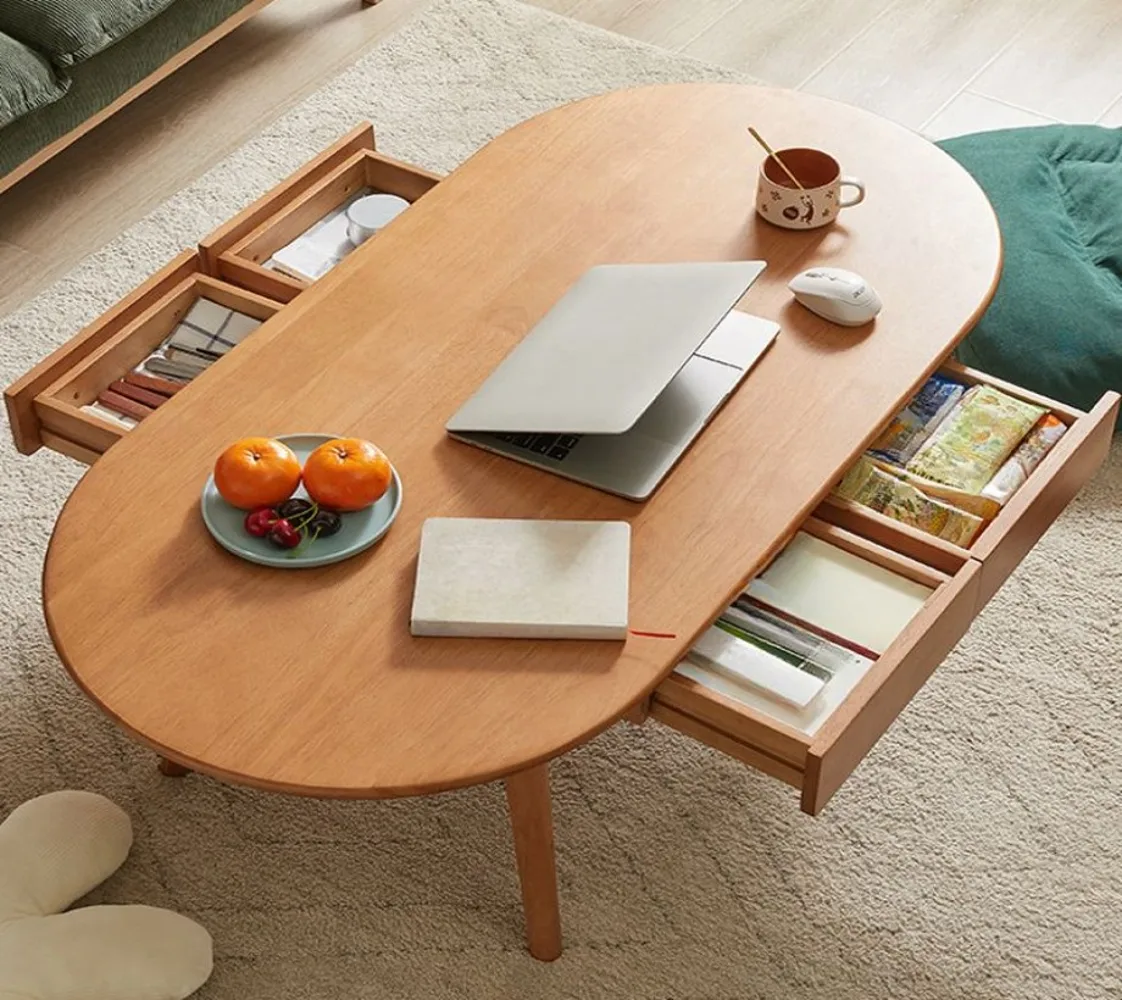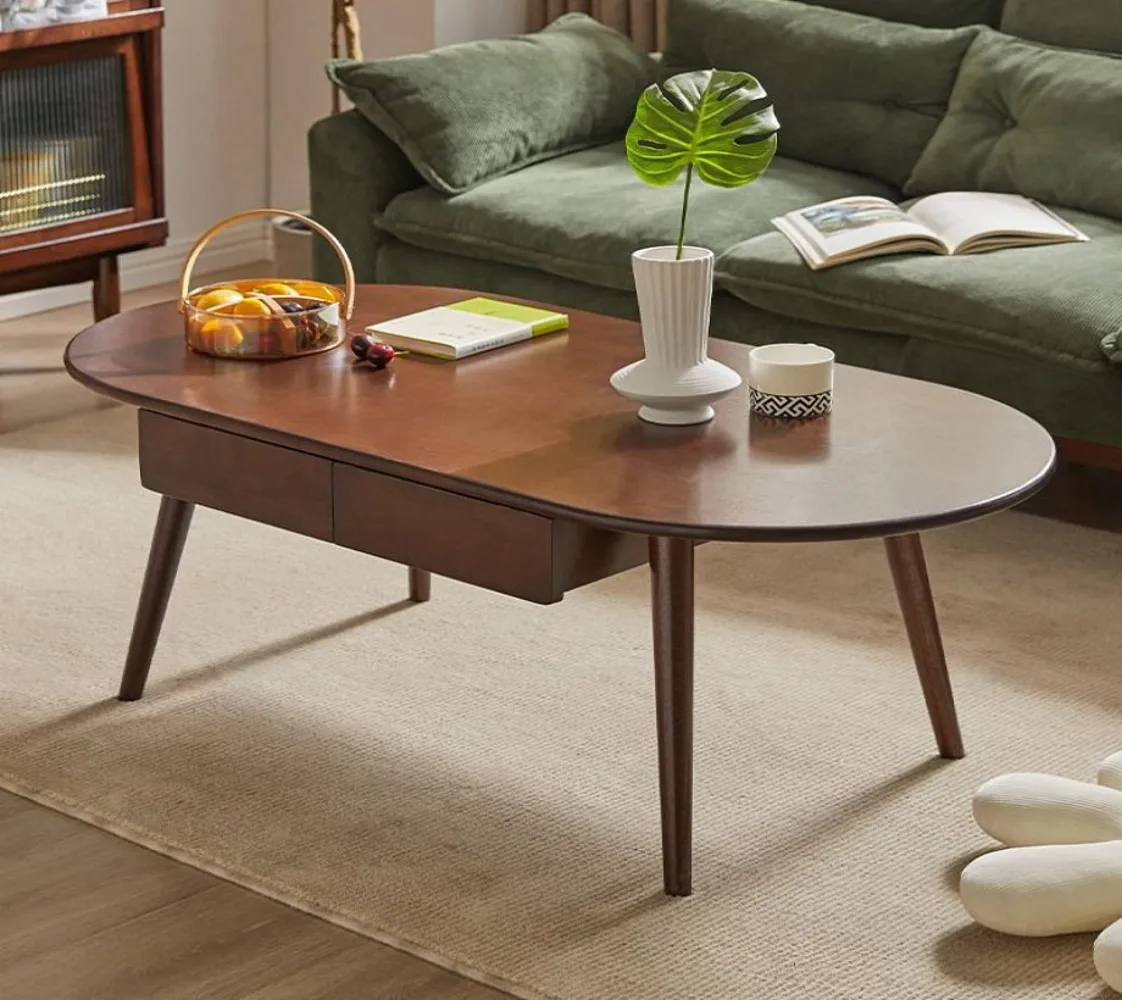 طاولة خشبية بيضاوية عصرية بلون بني داكن/لون طبيعي مع أربعة أرجل وأربعة أدراج
