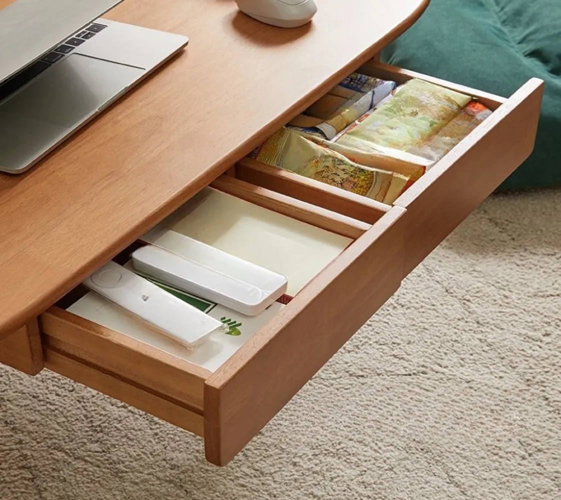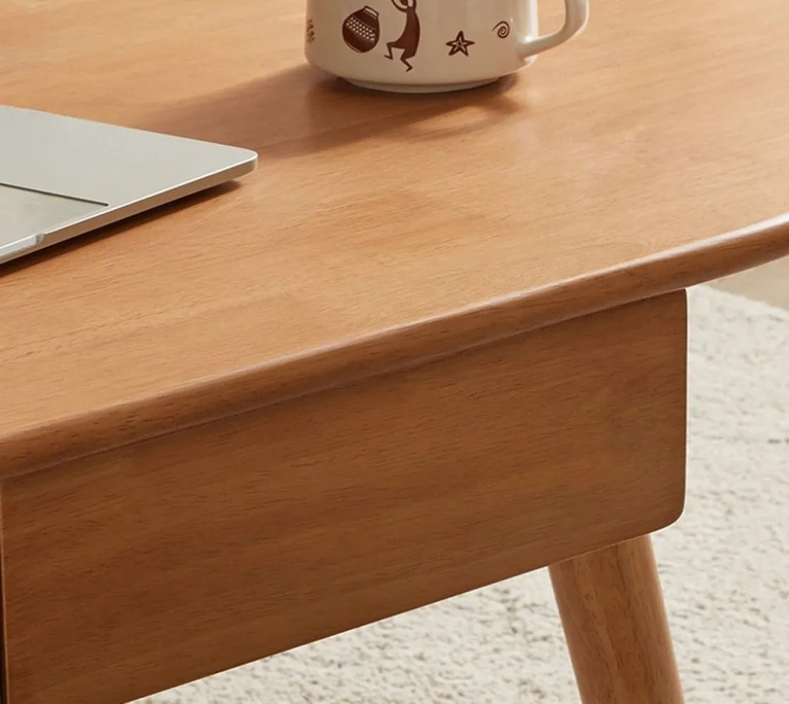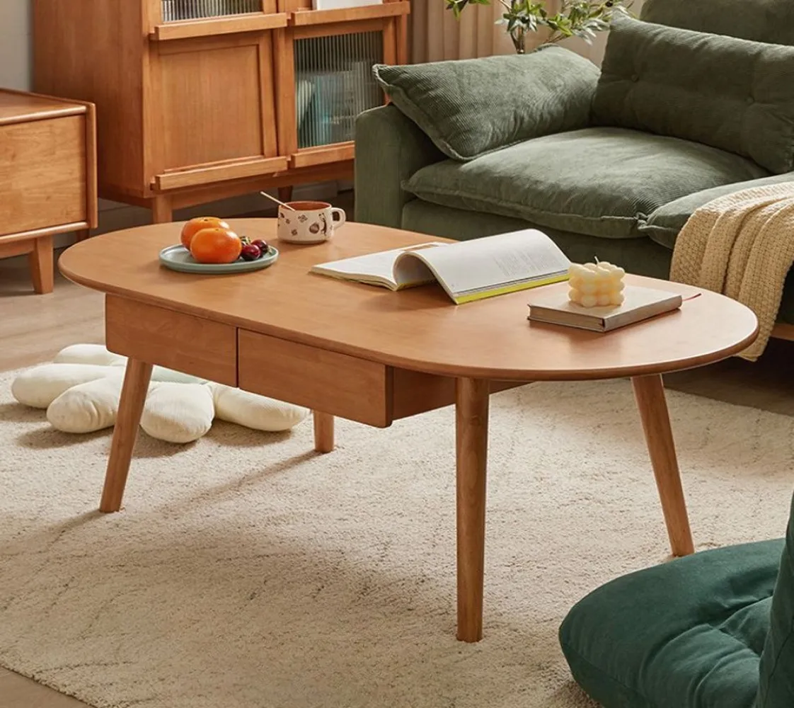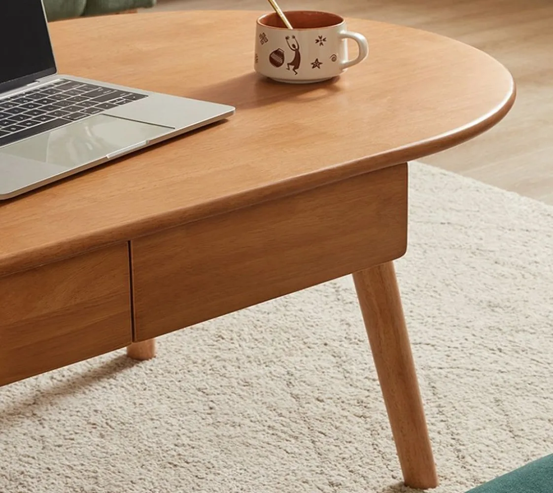 طاولة خشبية بيضاوية عصرية بلون بني داكن/لون طبيعي مع أربعة أرجل وأربعة أدراج