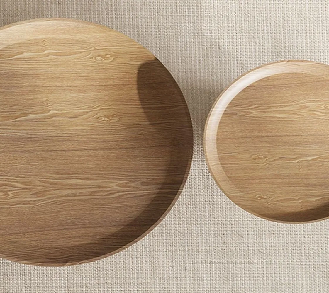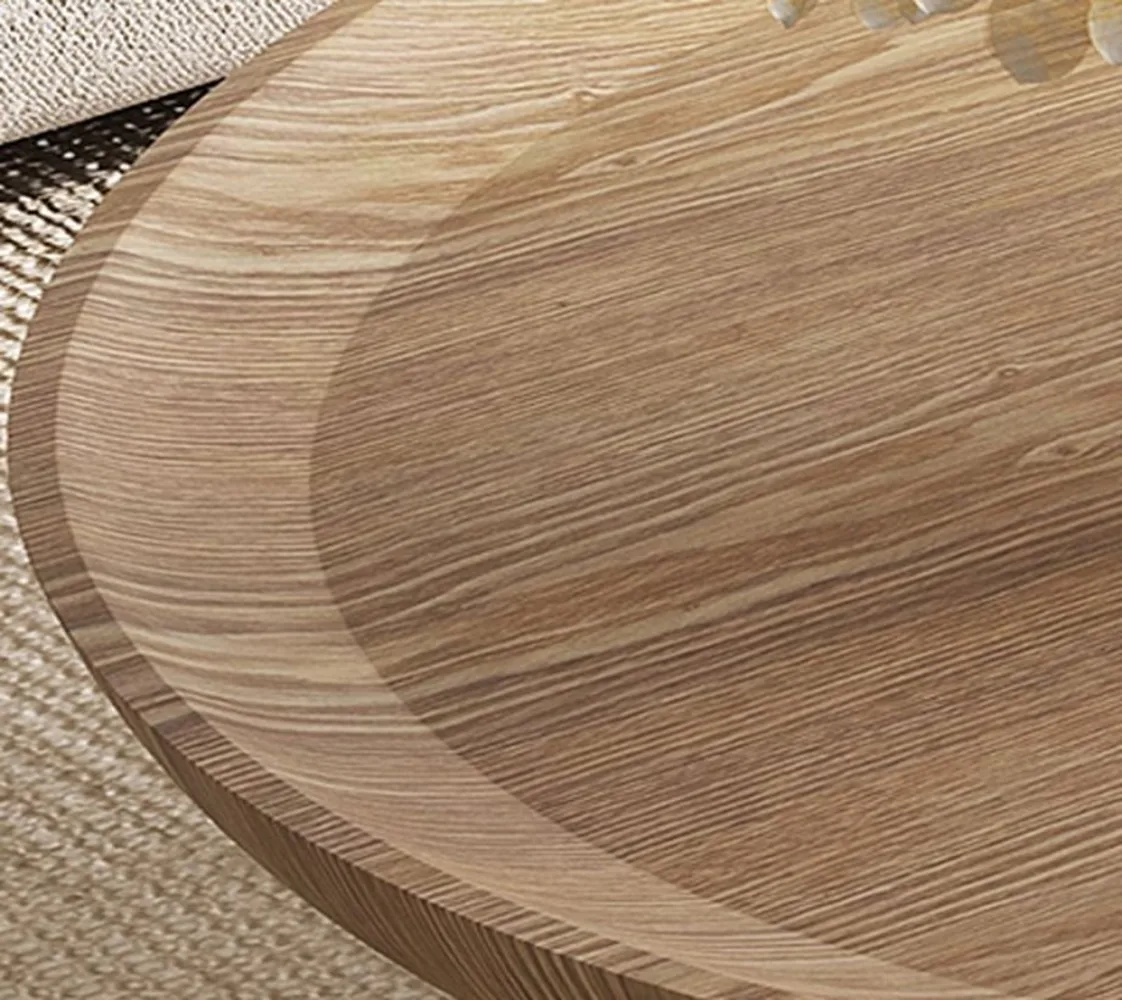 طاولة خشبية دائرية الشكل على الطراز الاسكندنافي مع قاعدة على شكل وعاء للمدخل