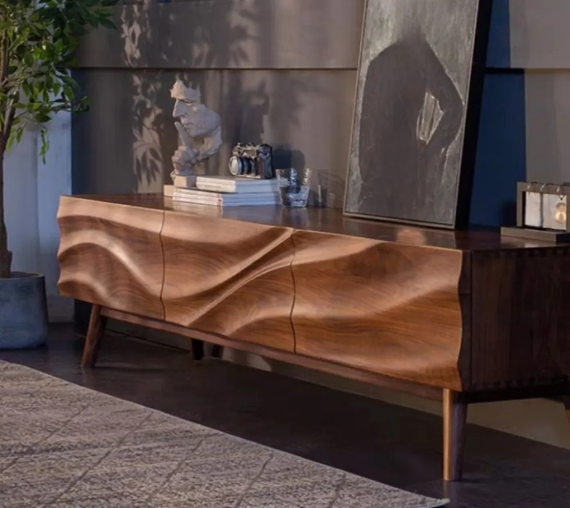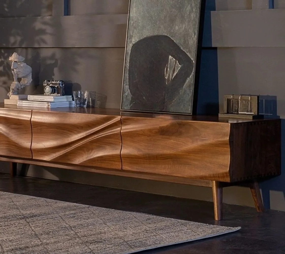 ترابيزة تلفزيون عصرية لغرفة المعيشة مع مساحة تخزين مغلقة و3 أدراج مزودة بمساحة تخزين مميزة، مصنوعة من الخشب الطبيعي وخشب الكونتر ، أنيقة وعملية، وتلبي احتياجاتك في ترتيب وتنظيم منزلك بشكل مثالي