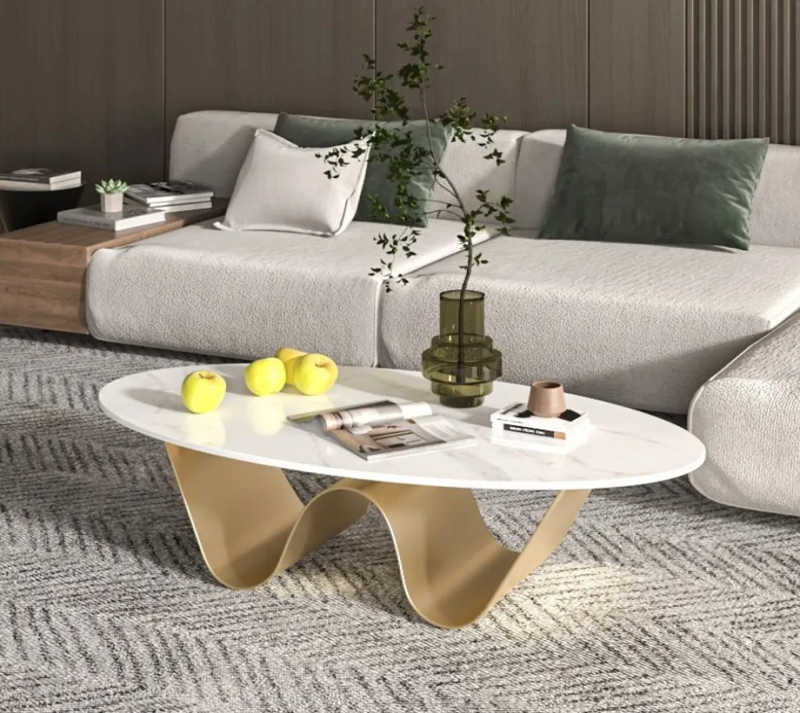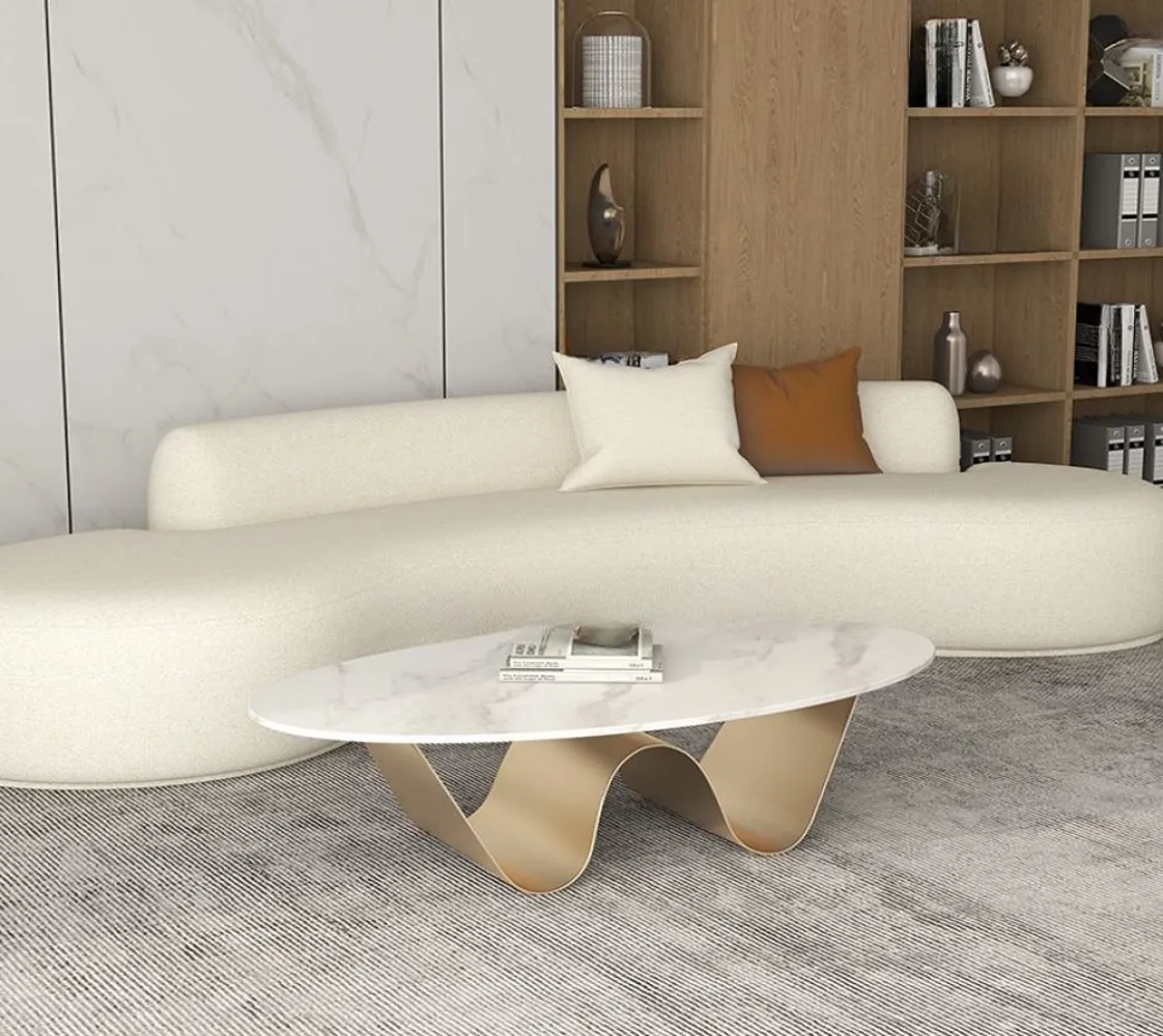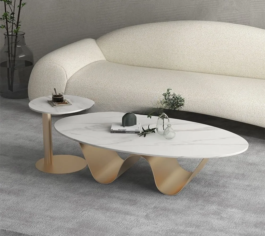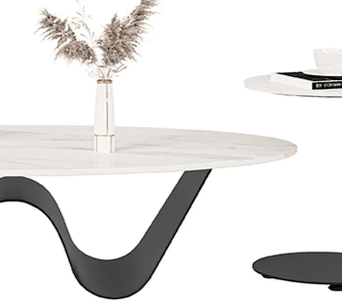 تم تصميم مجموعة طاولات القهوة لتكون ضرورية في العصر الحديث، ومثالية لإضفاء لمسة راقية على أي مساحة. طاولة قهوة مستطيلة الشكل من بديل الرخام المقاوم للخدش مع قاعدة مجردة للمساحات الصغيرة