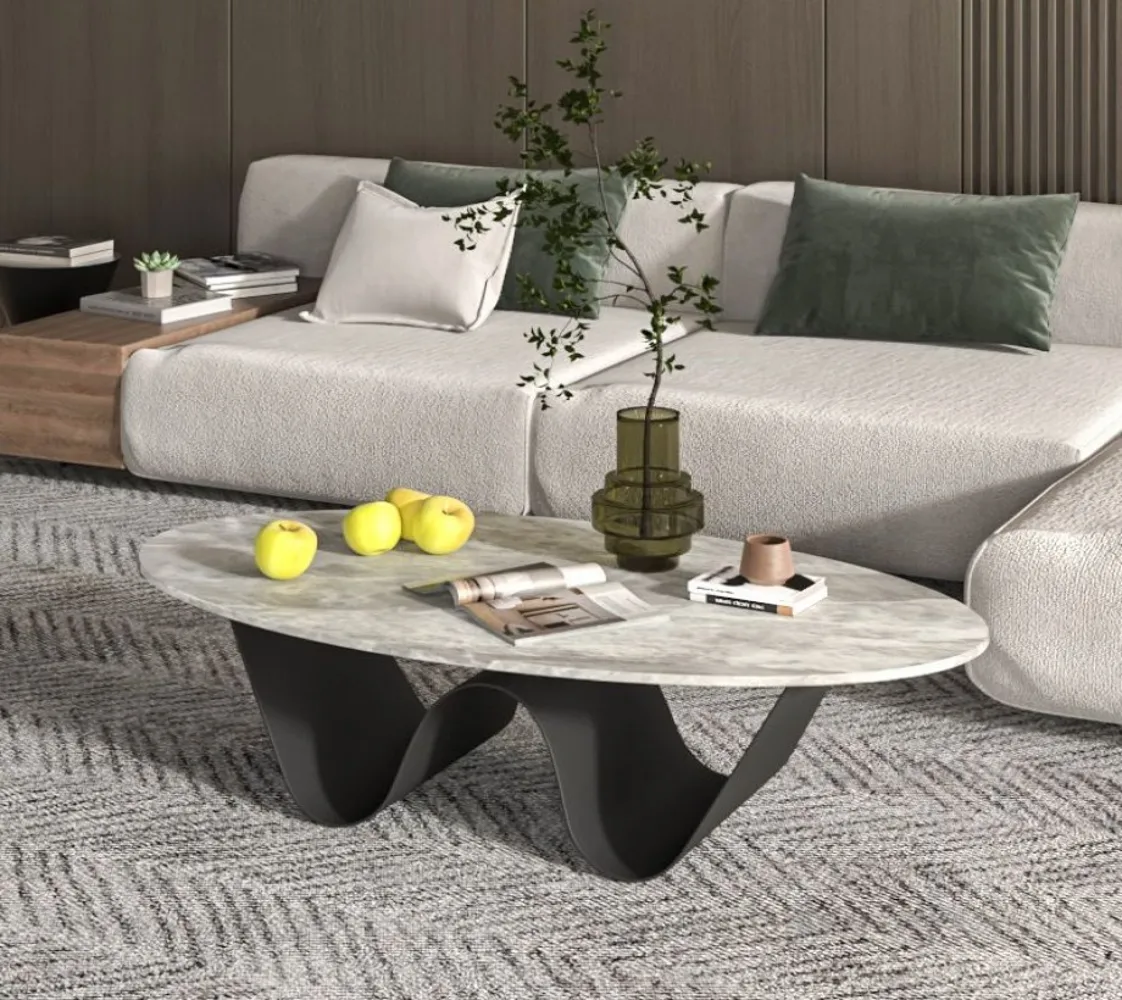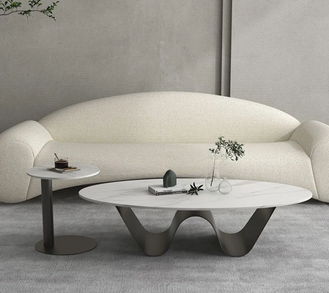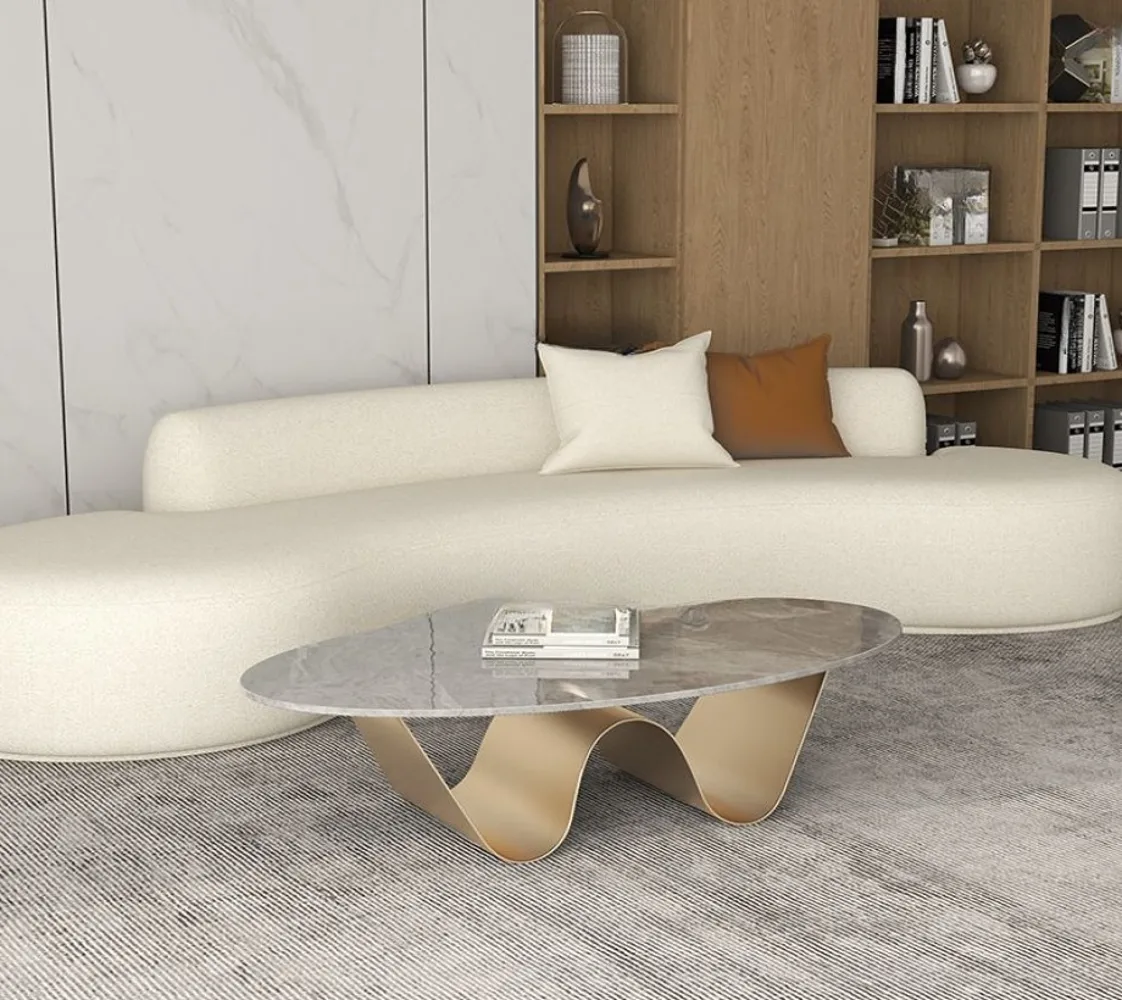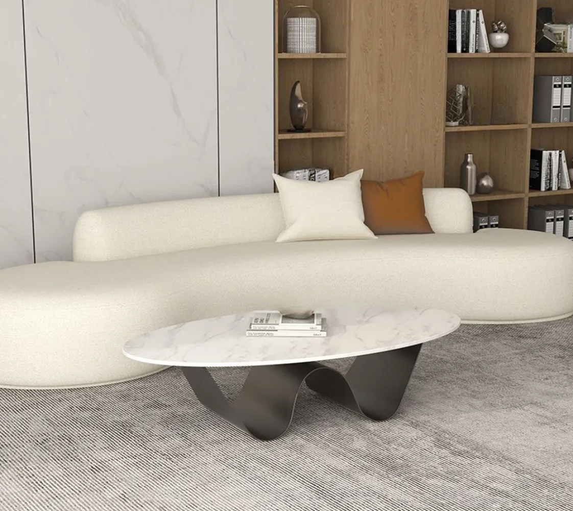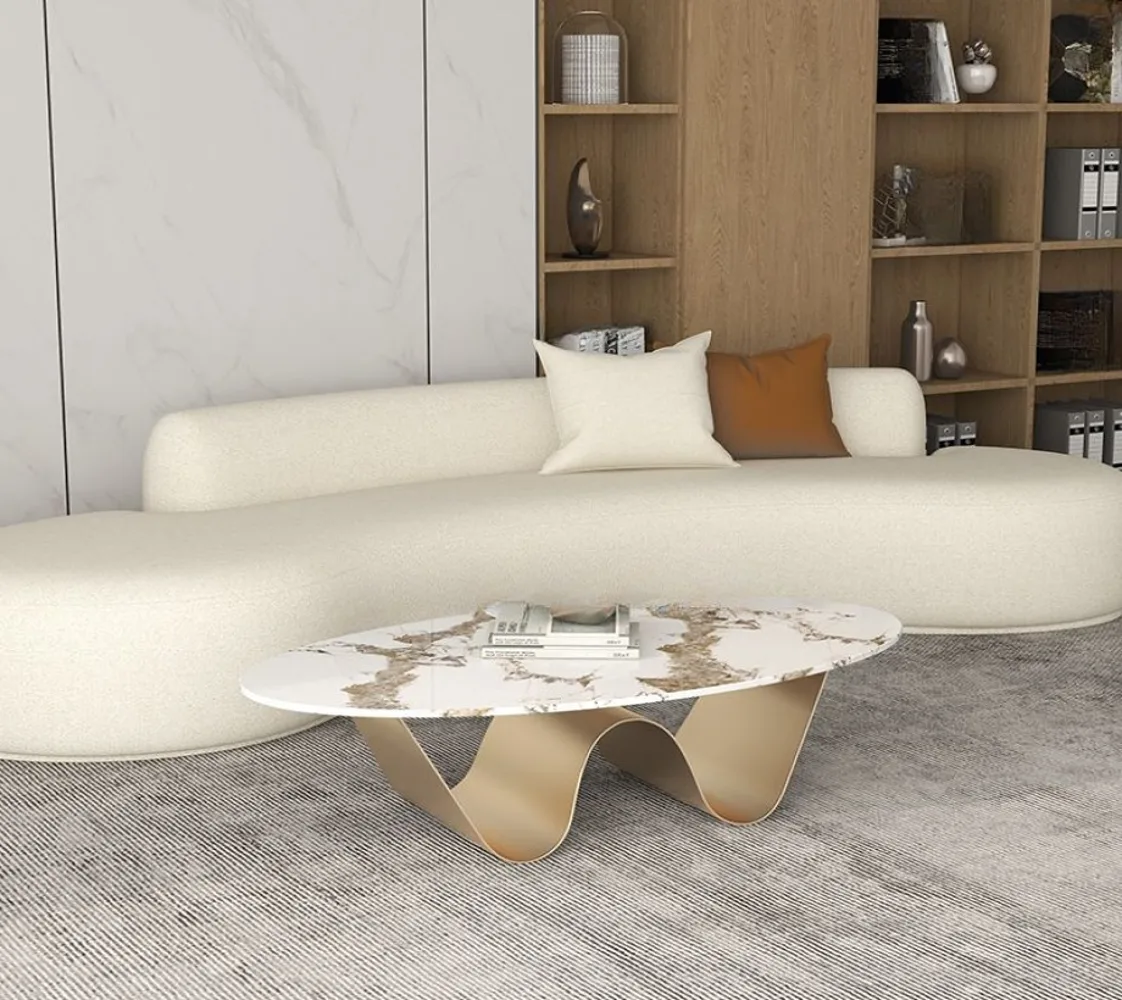 تم تصميم مجموعة طاولات القهوة لتكون ضرورية في العصر الحديث، ومثالية لإضفاء لمسة راقية على أي مساحة. طاولة قهوة مستطيلة الشكل من بديل الرخام المقاوم للخدش مع قاعدة مجردة للمساحات الصغيرة