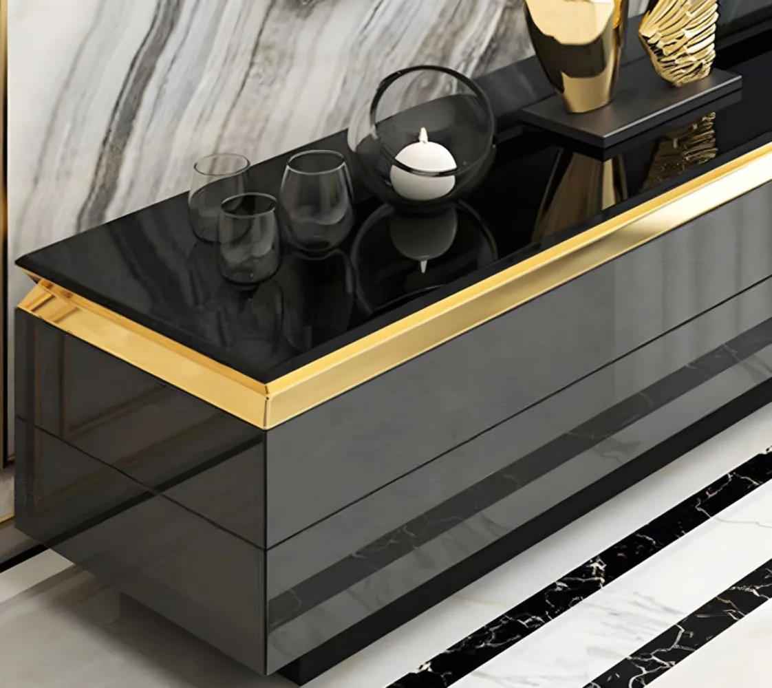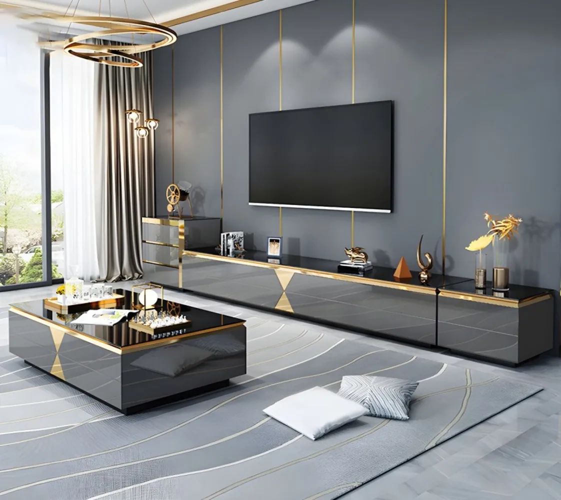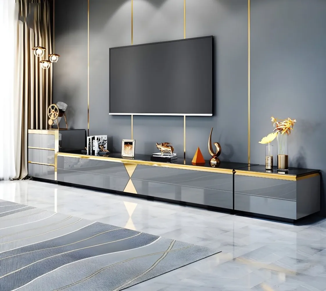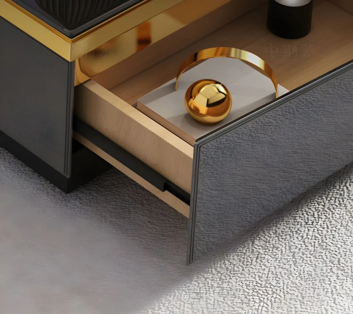 ترابيزة تلفزيون مع أدراج ووحدة تحكم وسائط زجاجية علوية لغرفة المعيشة