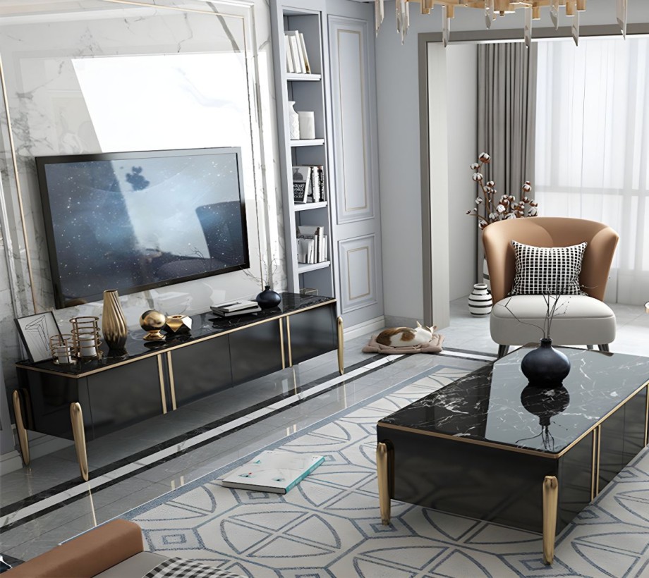 ترابيزة تلفاز فاخر مستطيل الشكل مزود بأبواب ومزود بخزانة زجاجية للتخزين