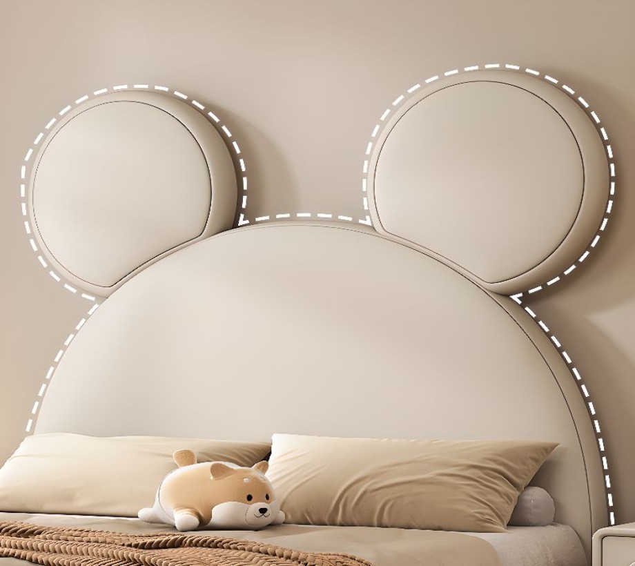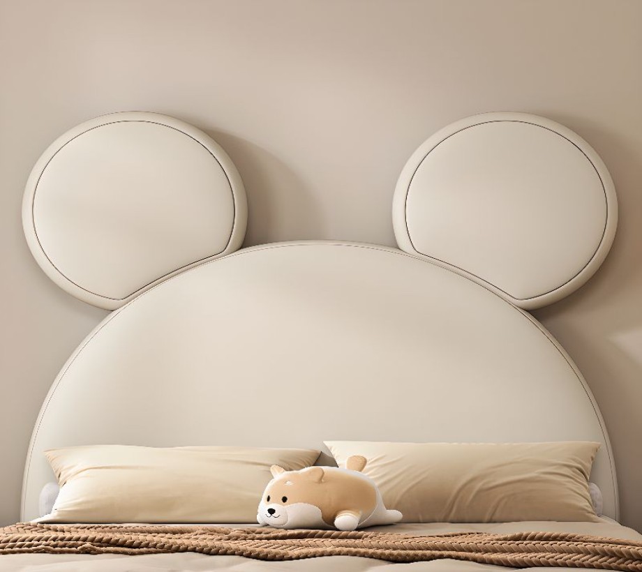 سرير أطفال قياسي من أخشاب طبيعية مع لوح أمامي من الجلد عالى الجودة