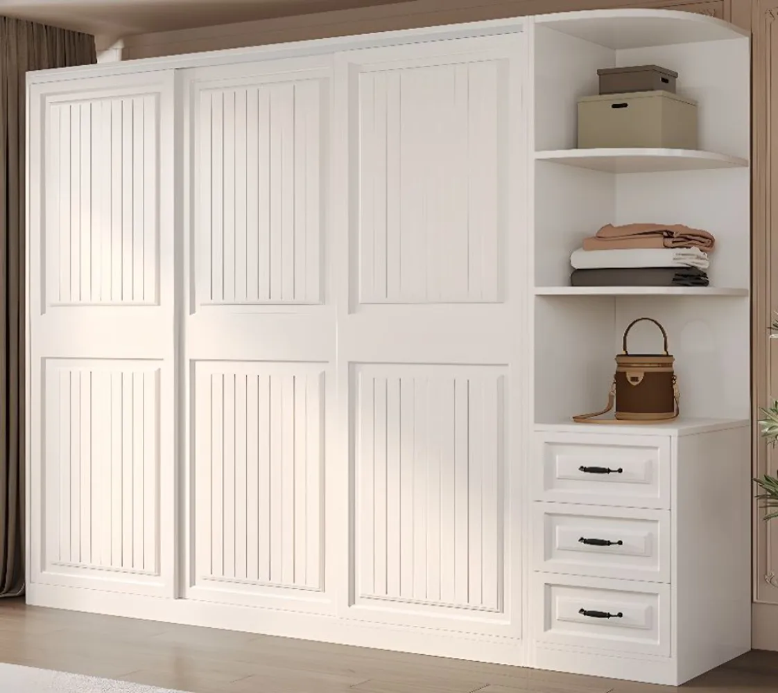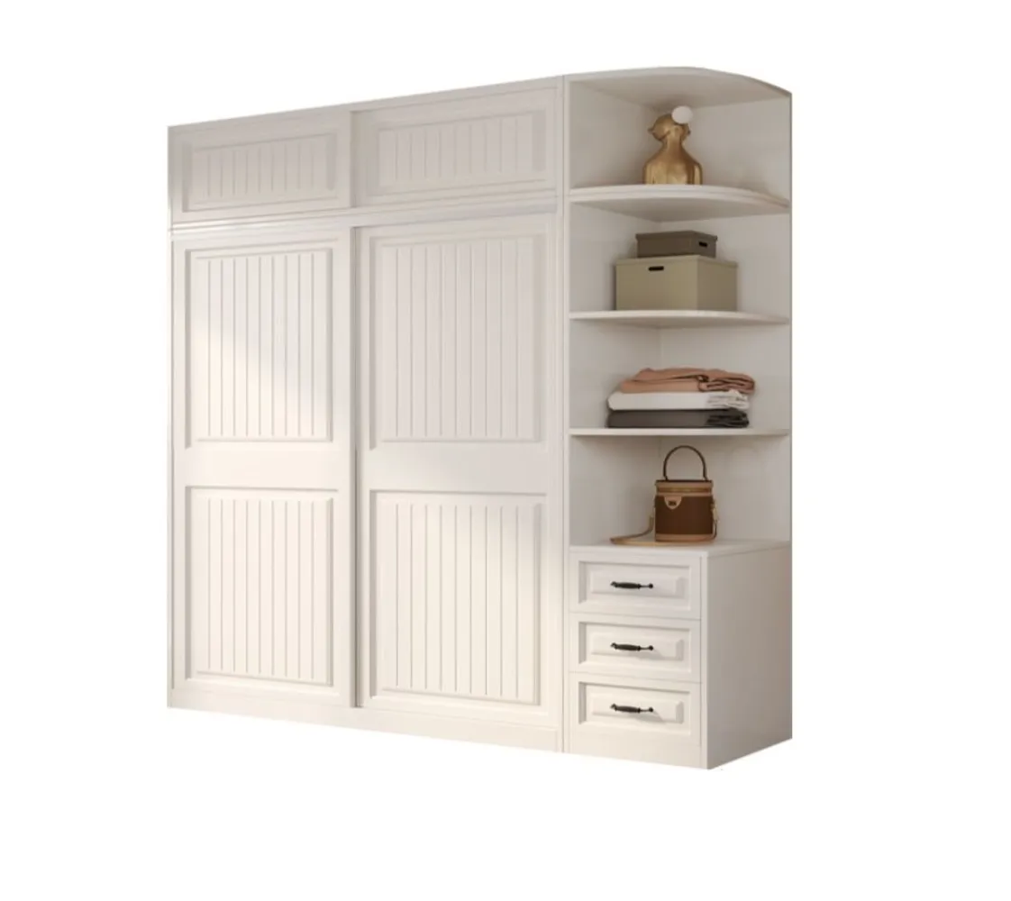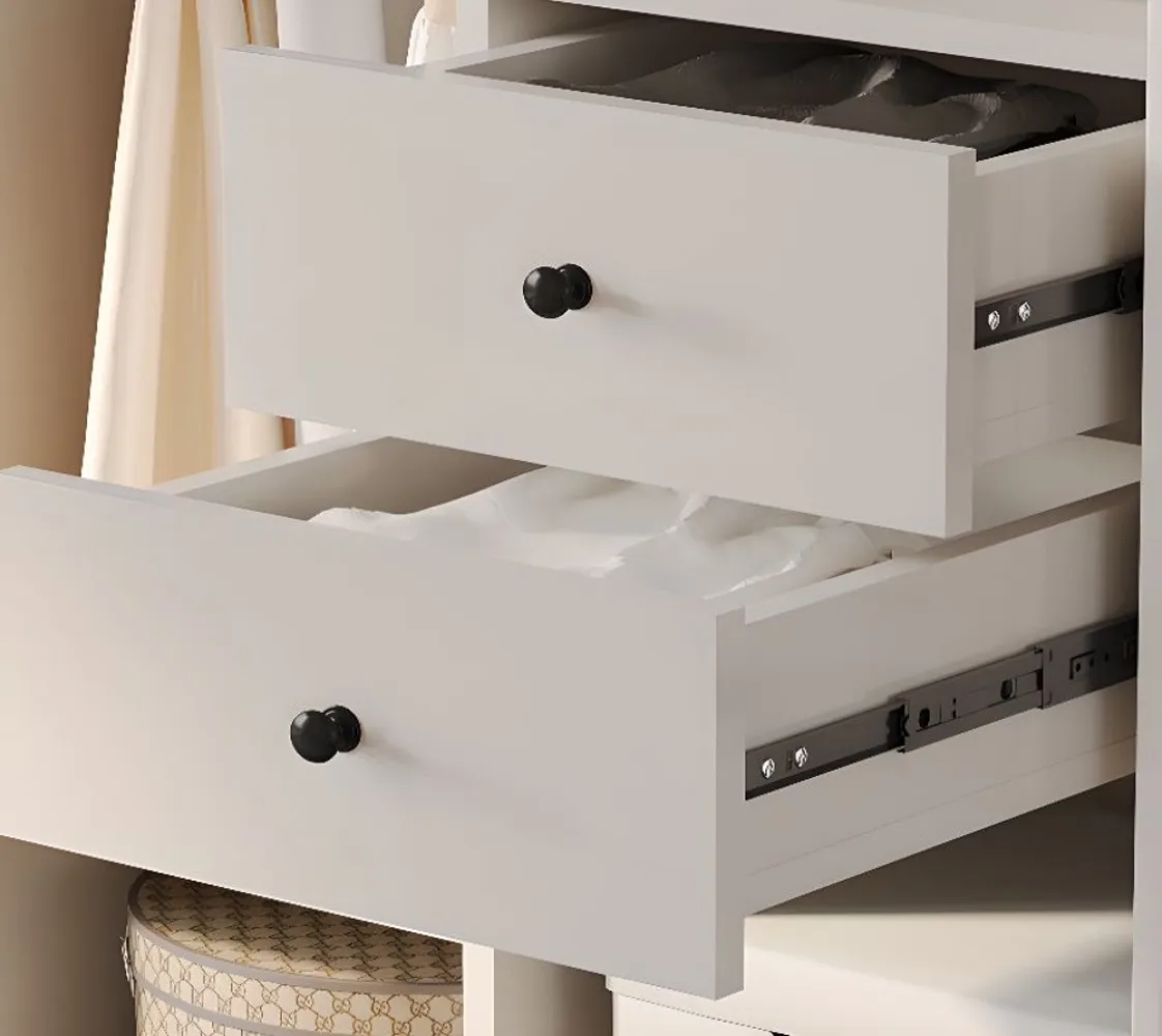 خزانة ملابس أنيقة للأطفال مصنوعة من الخشب الأبيض مع رف وقضيب ملابس وباب وأرفف تخزين جانبية