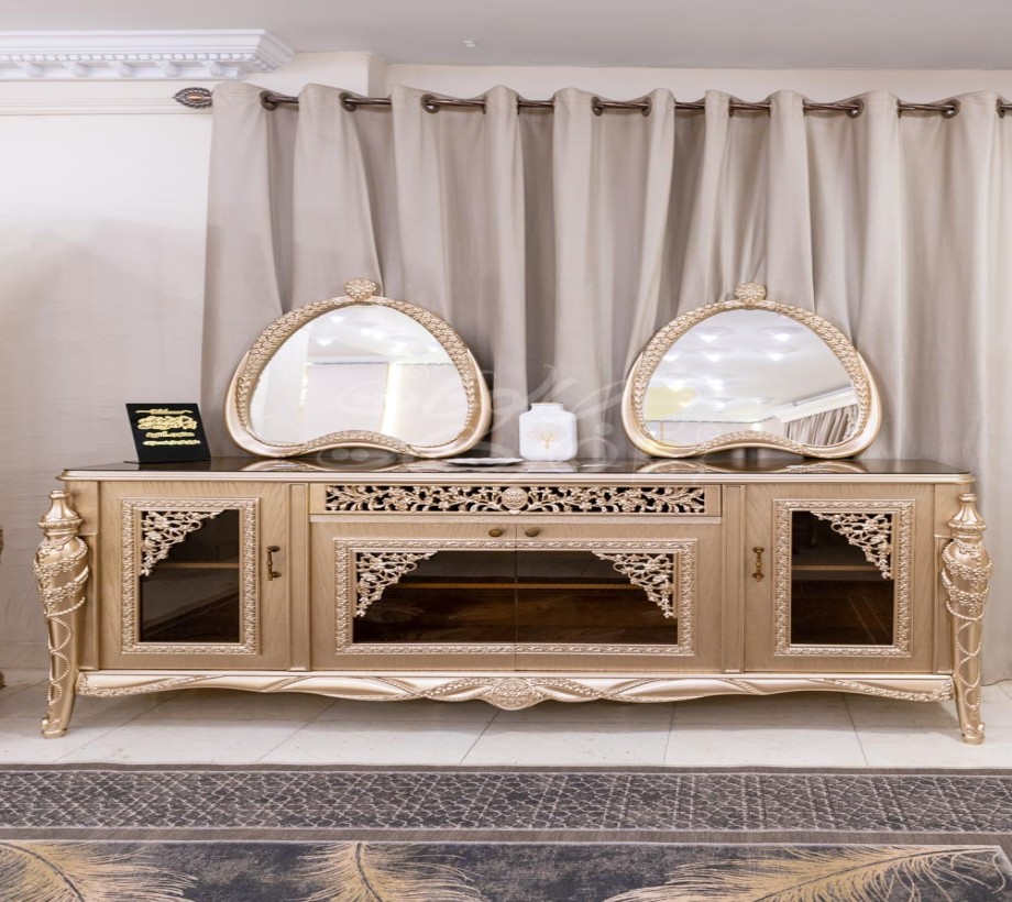ترابيزة .6 كراسى . بوفيه . نيش . برواز مرايا كلاسيك غرفة طعام مصنعه من خشب الزان الطبيعى بطابع كلاسيكى مميز