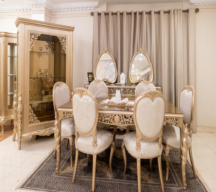 غرفة طعام كلاسيك بتصميم راقي ووميز مكونة من :