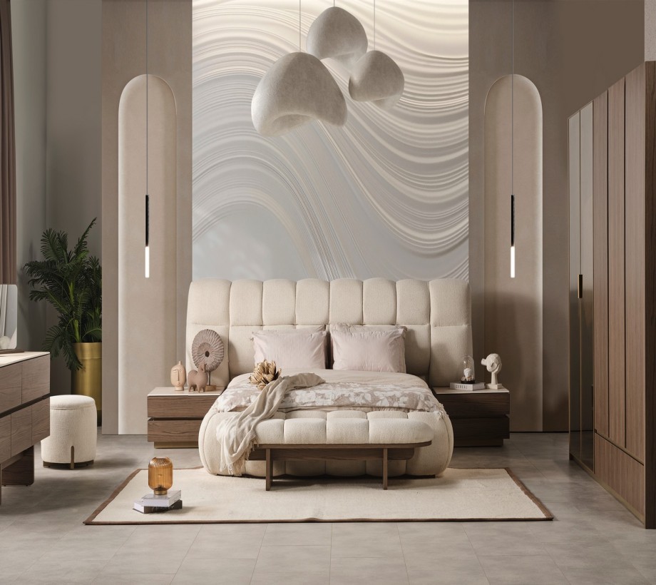 إطار سرير مبطن مستطيل الشكل من الإسفنج فردانى،من قماش البوكليه عالى الجودة