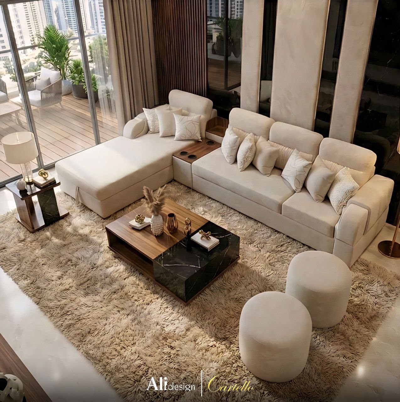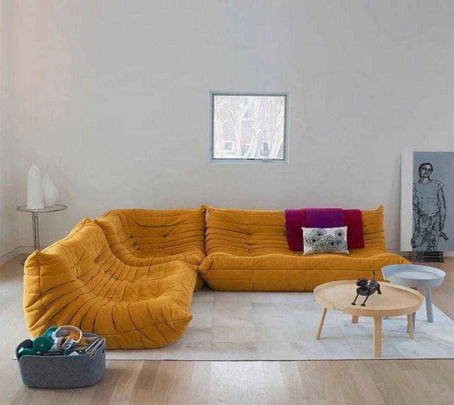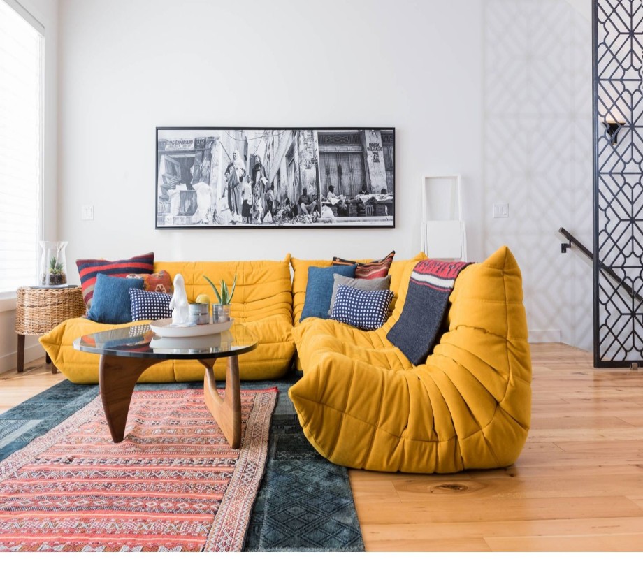 ركنة شبابى مودرن باللون الأصفر وترابيزة مودرن من الاخشاب الطبيعية