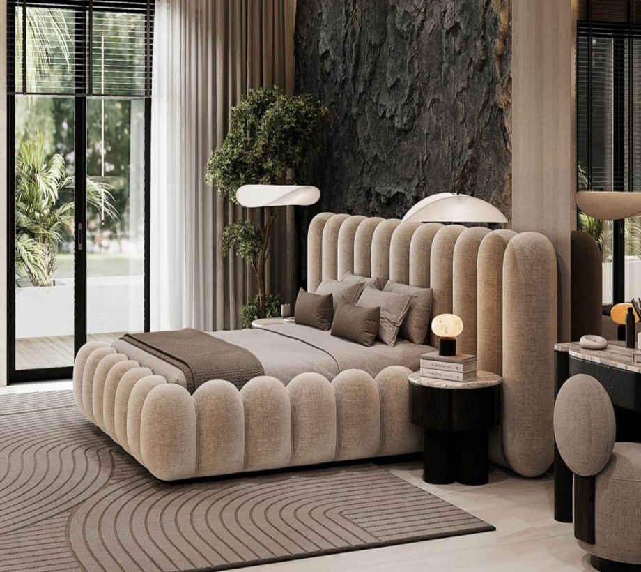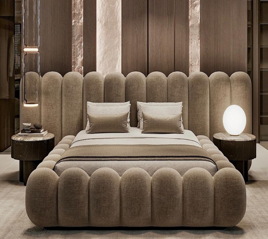 إطار سرير مبطن مستطيل الشكل من الإسفنج فردانى،من قماش البوكليه عالى الجودة