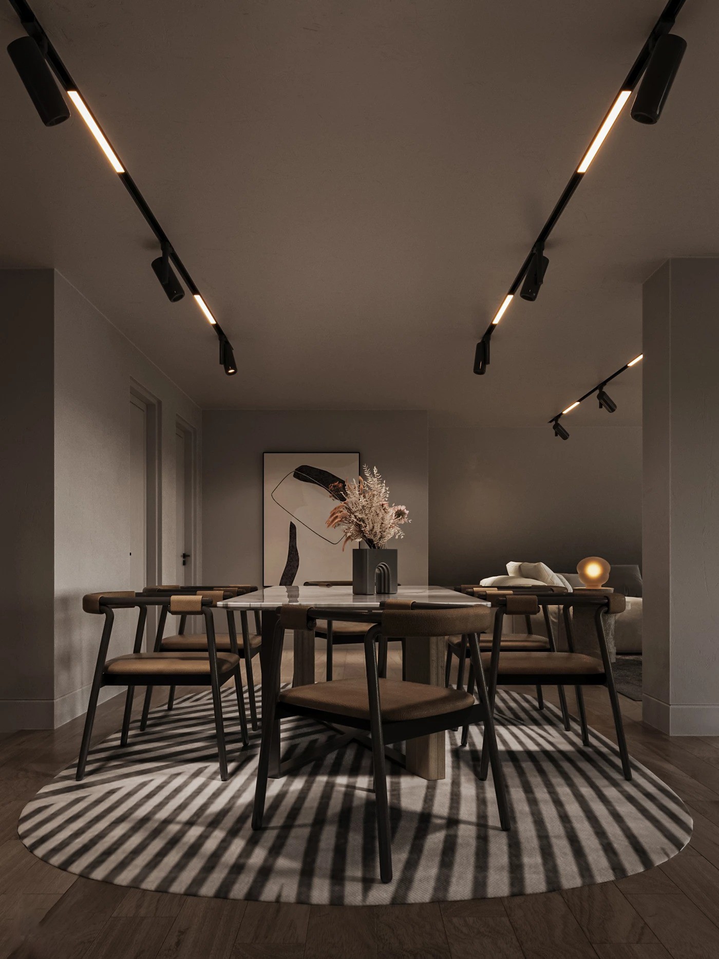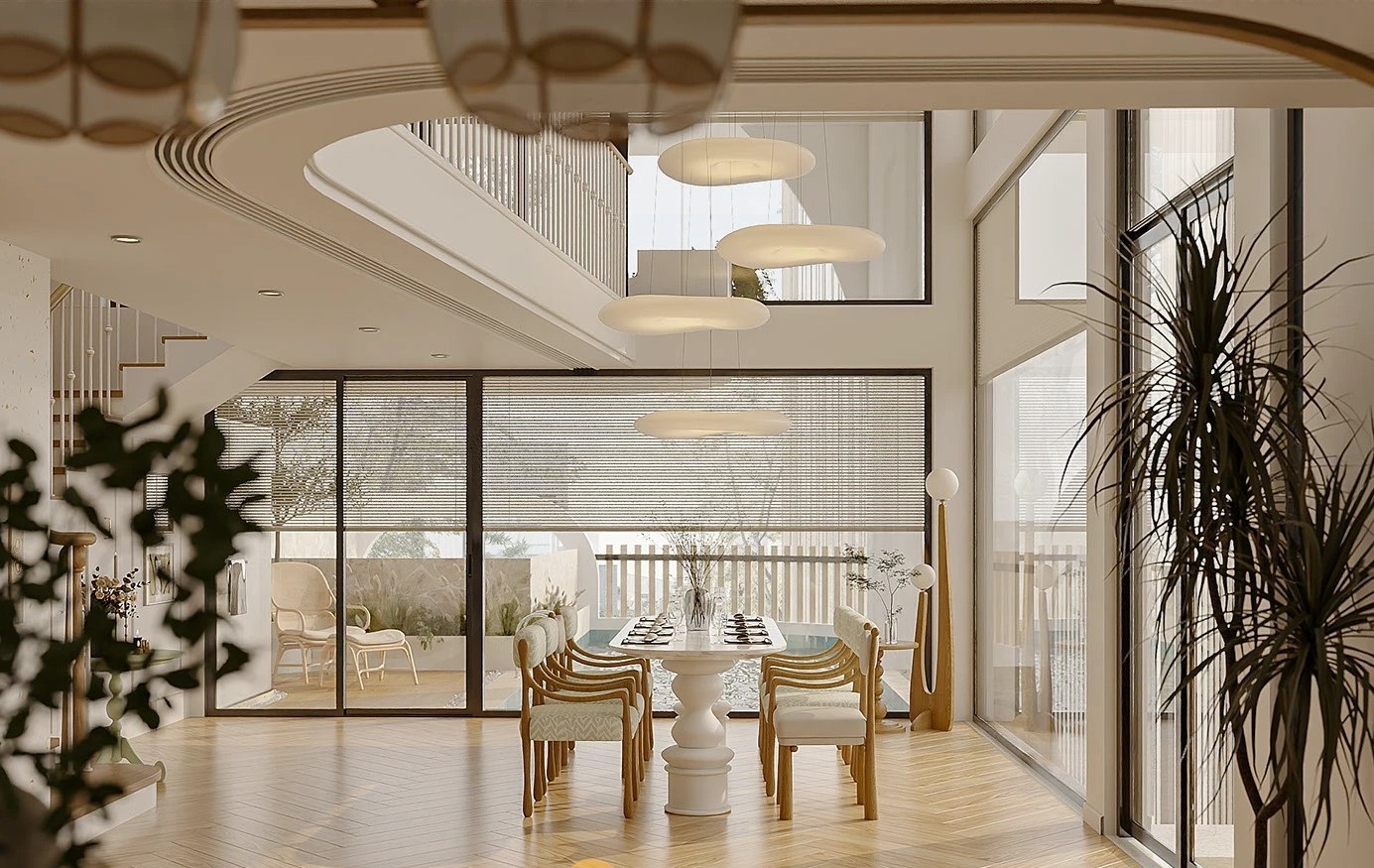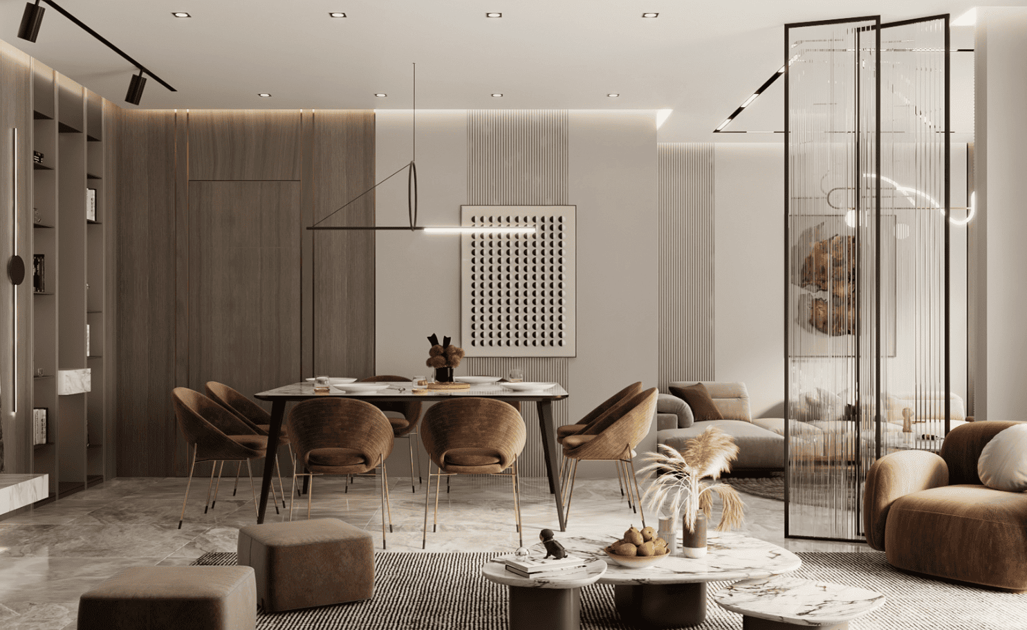 طاولة طعام خشبية بتصميم عصري ، كرسي مريح بلوني خشبي غامق مع الاوف وايت. مصنوعة من خامات ذات جودة عالية مثل الخشب الطبيعي وخشب الزان ورخام عالي الجودة