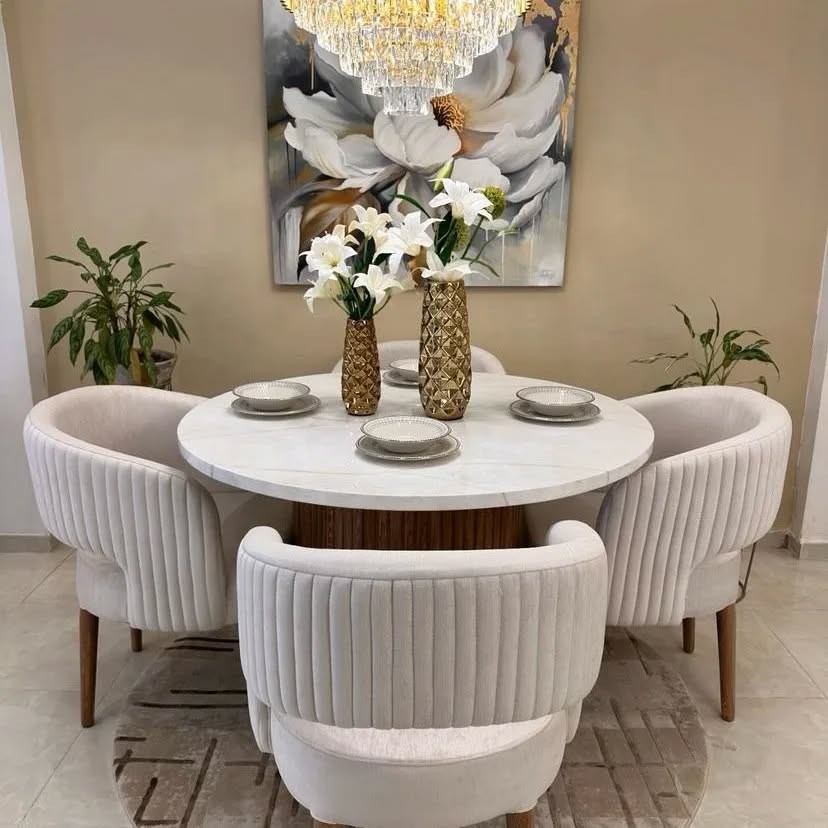 أبعاد طاولة الطعام : العرض 160 سم . العمق 160 سم .الارتفاع 73 سم