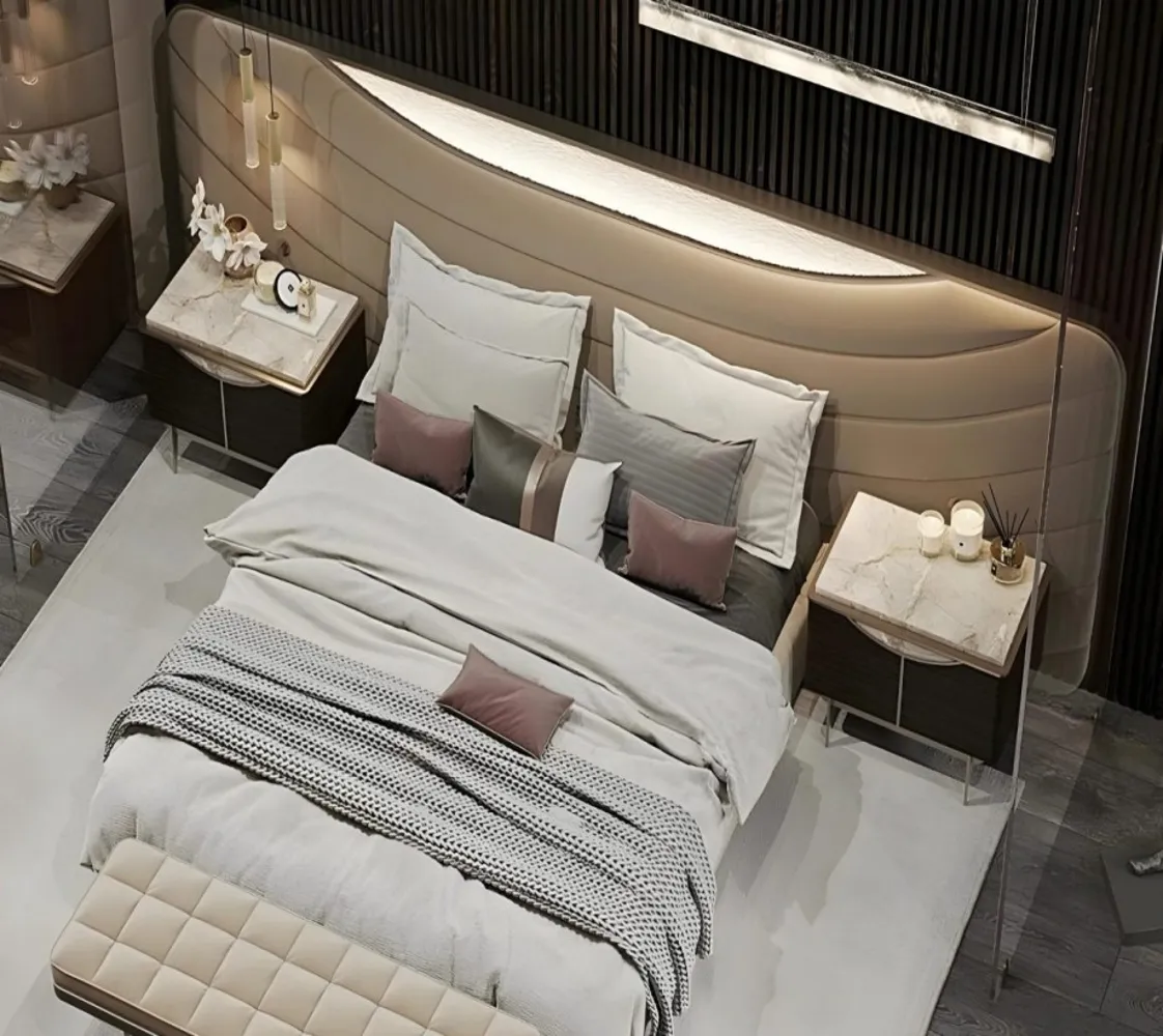 سريرمودرن + 2 كومود بتصميم عصرى + بانكيت