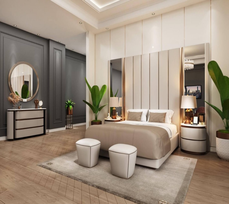 سريرمودرن + 2 كومود بتصميم عصري