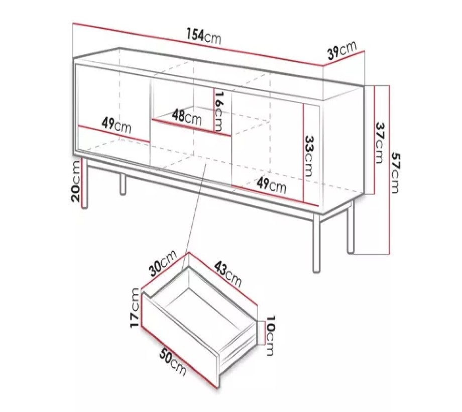 الابعاد (عرض 154 cm) (عمق 39 cm) (ارتفاع 57 cm)