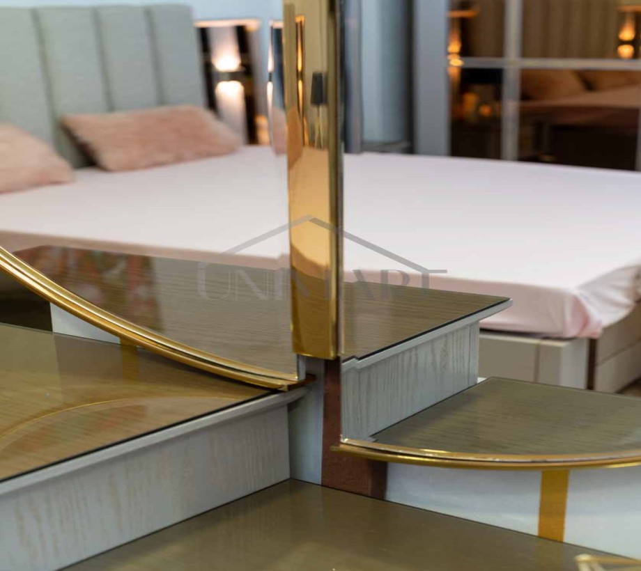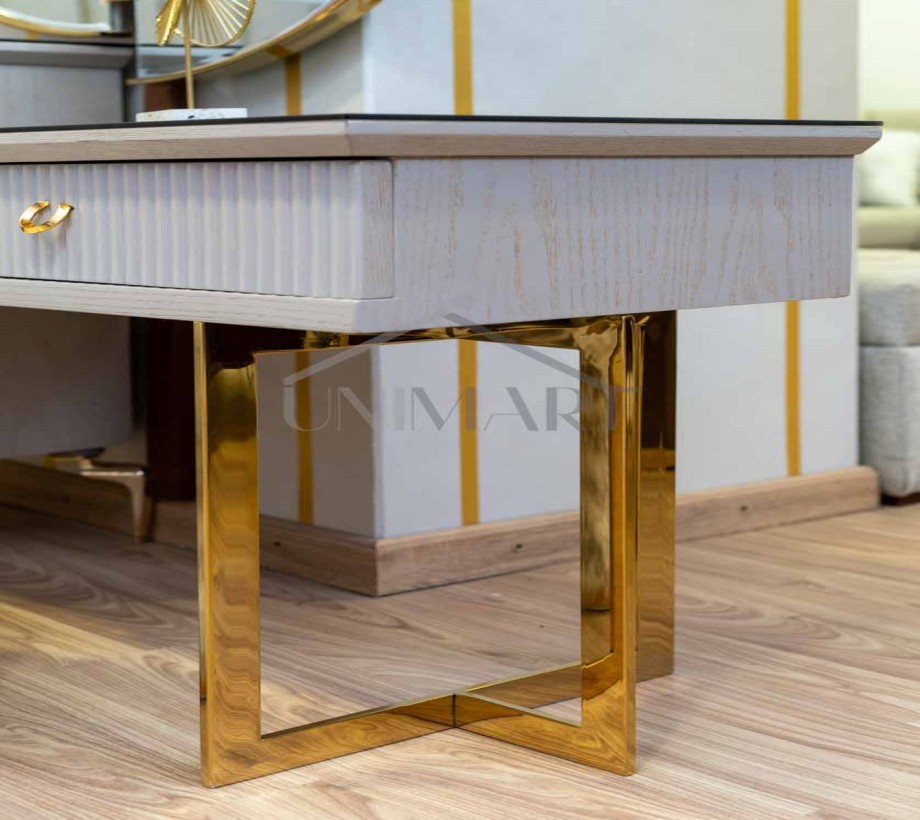 الخامات :سطح زجاج - خشب + معدن عالى الجودة مقاوم للصدأ