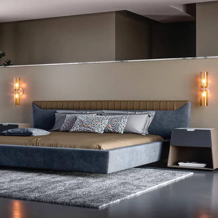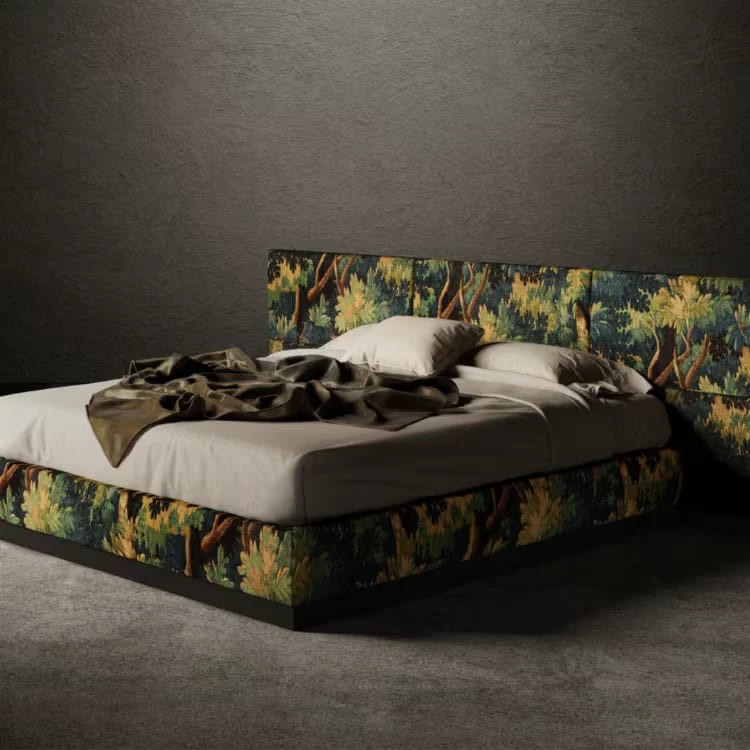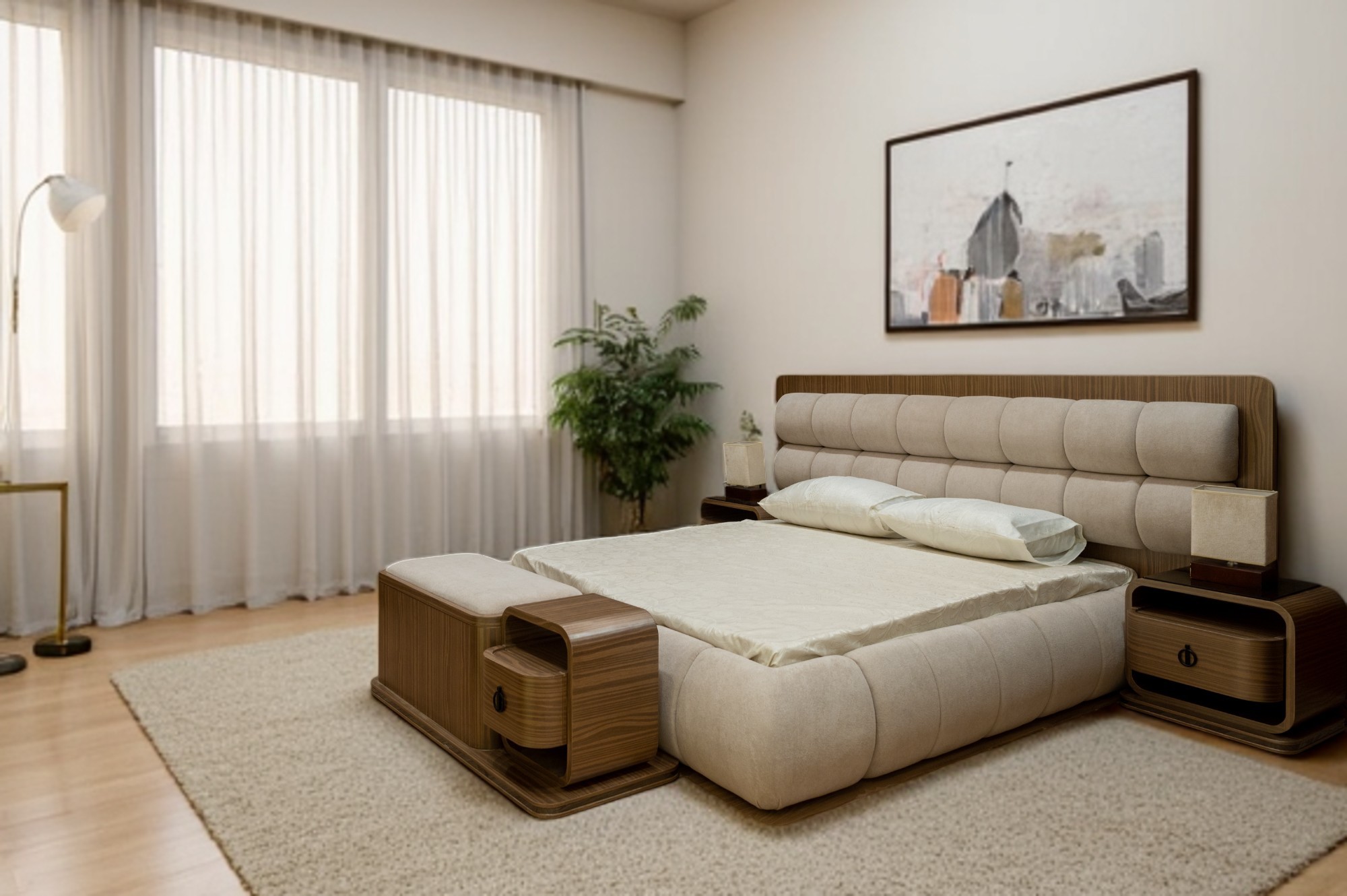 إطار سرير مبطن مستطيل الشكل من الإسفنج فردانى،من قماش البوكليه عالى الجودة + 2 كومود + بانكيت
