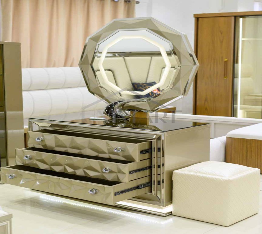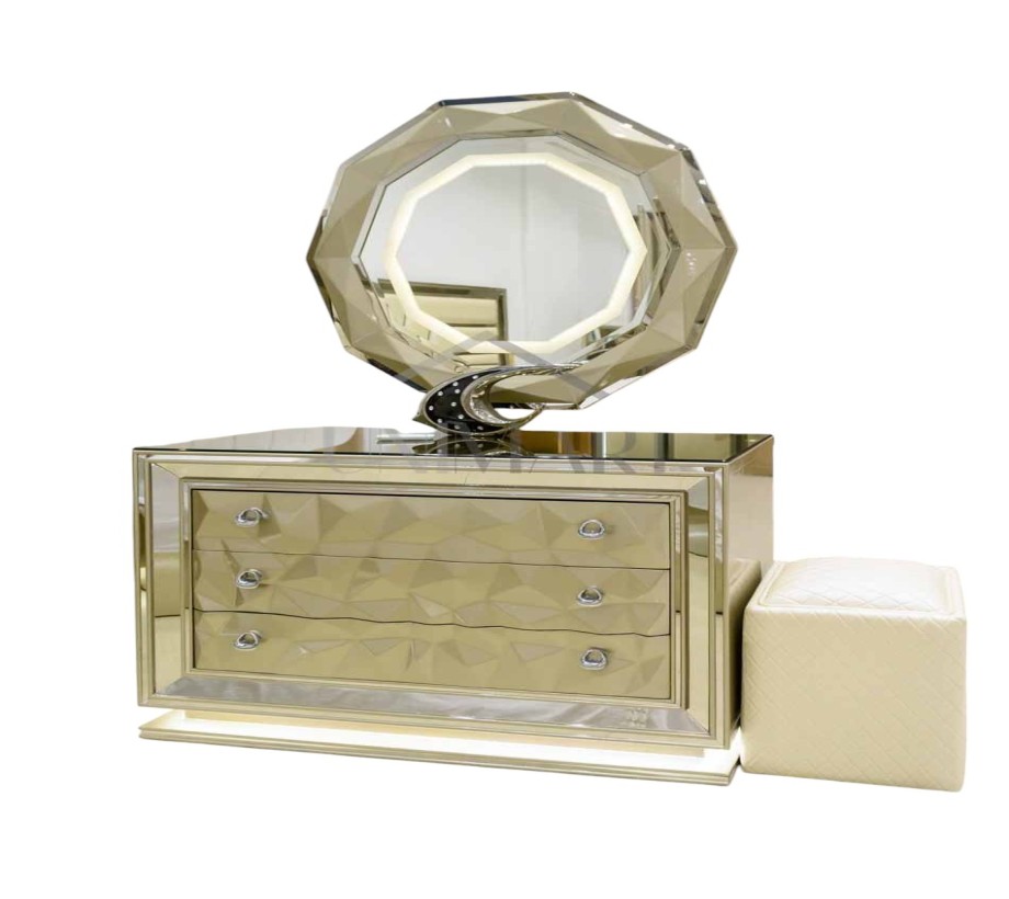 تحتوي هذه التسريحة الراقية الفاخرة ثلاثة أدراج . بما في ذلك التفاصيل الدقيقة والتشطيبات، تكون هذه التسريحة رائعة لأي غرفة نوم أو غرفة نوم تحتاج إلى لمسة.