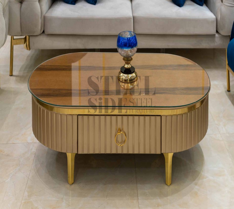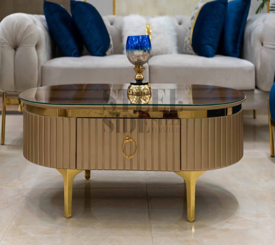 ترابيزة سنتر ستيل بيضاوى مع درج داخلى